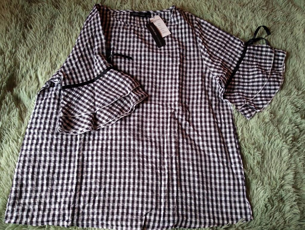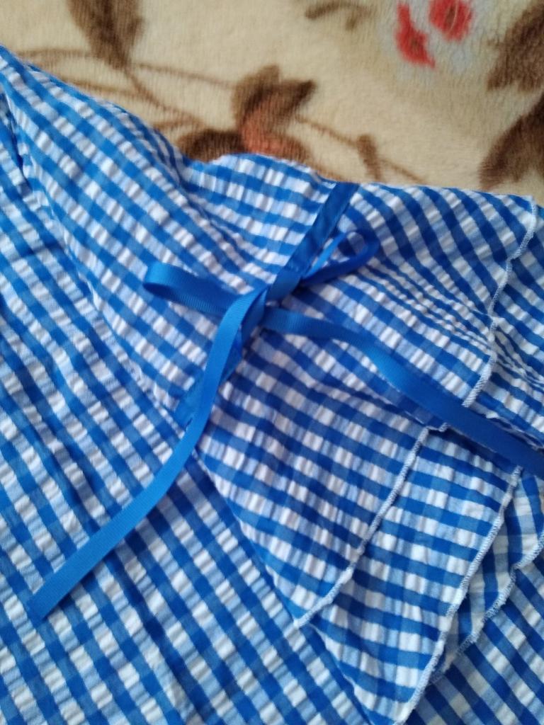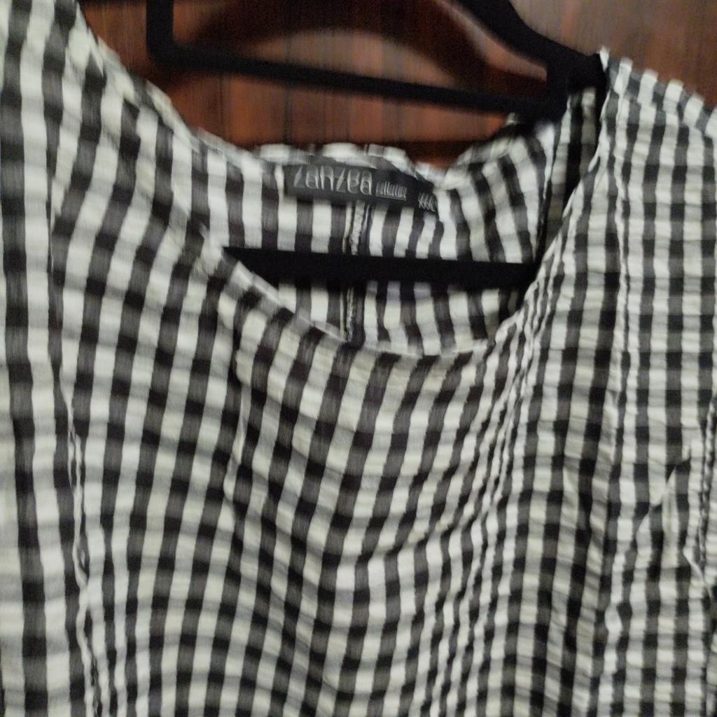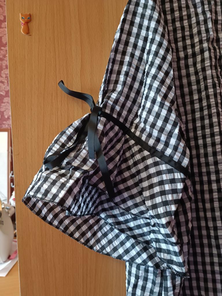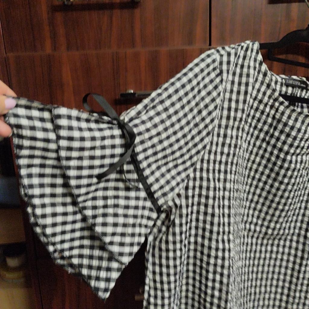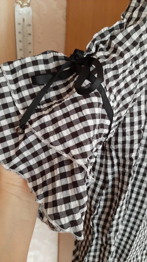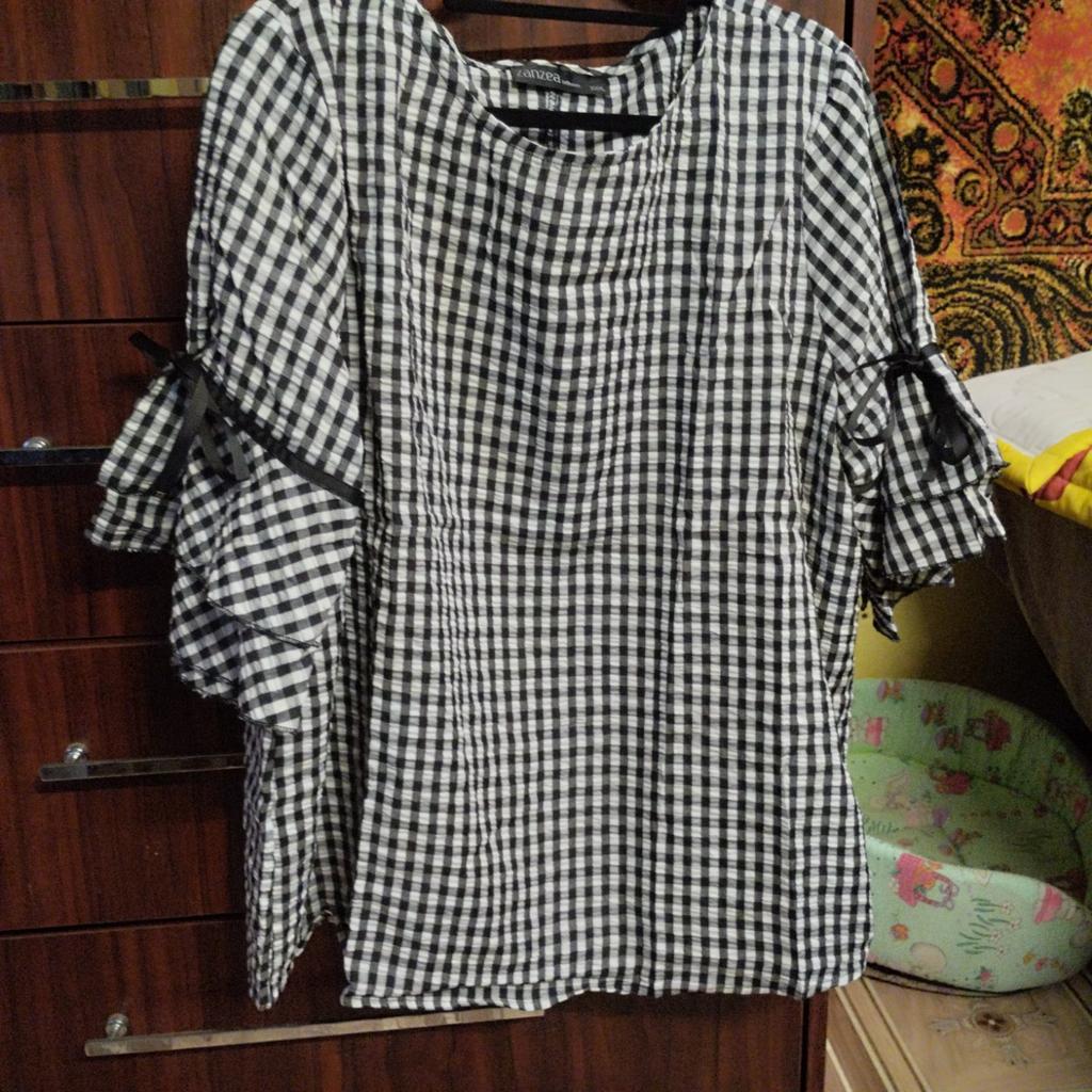 The blouse is normal, the only drawback is the lack of bust darts, the blouse constantly slides back, and I have to pull it down frequently. Otherwise, the material is light, it doesn't need ironing after washing, and it doesn't wrinkle.