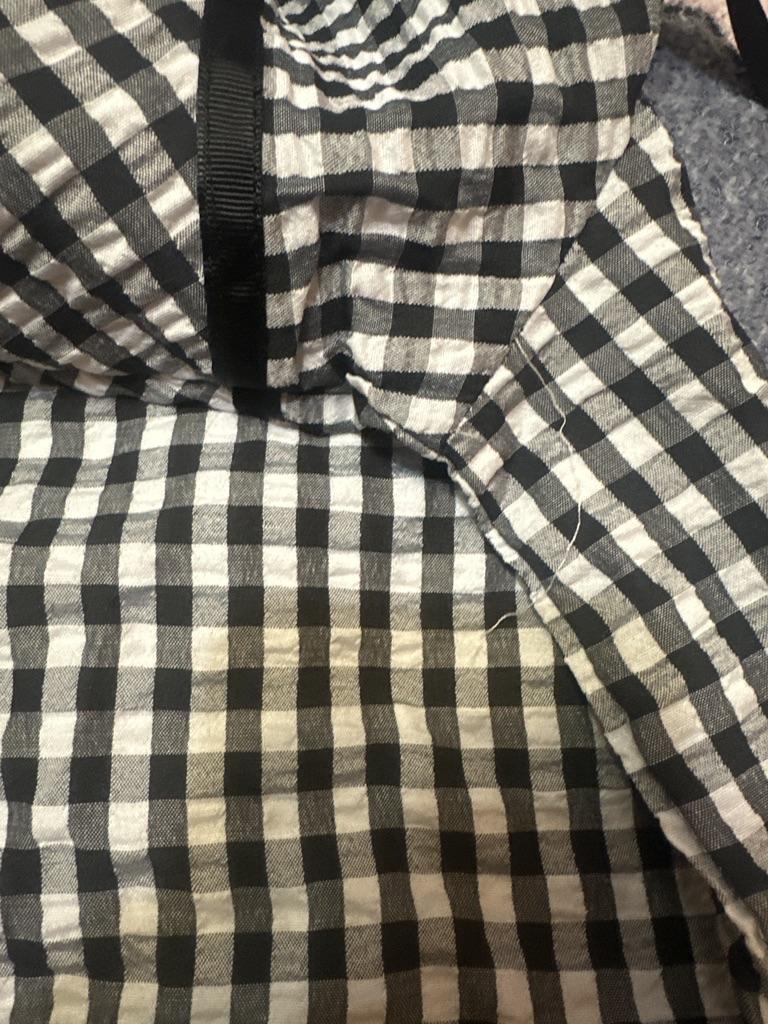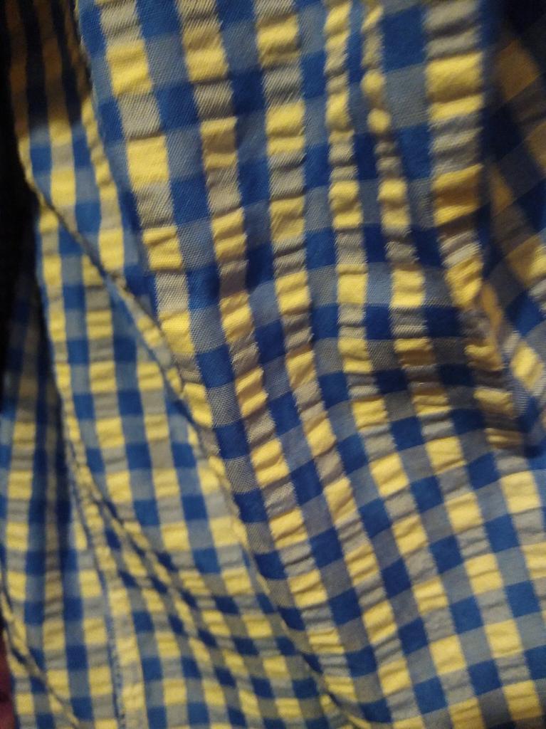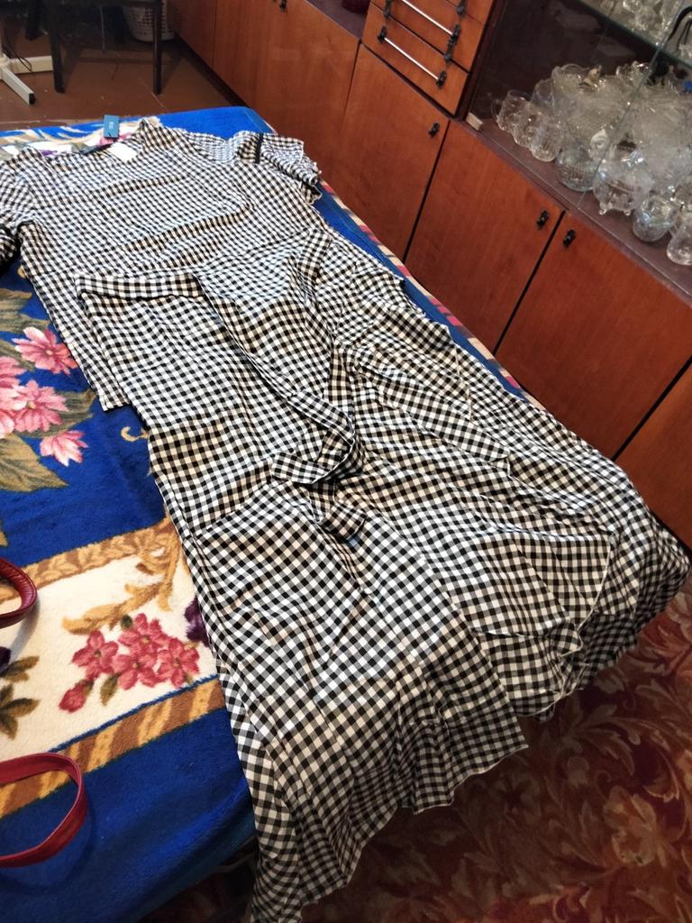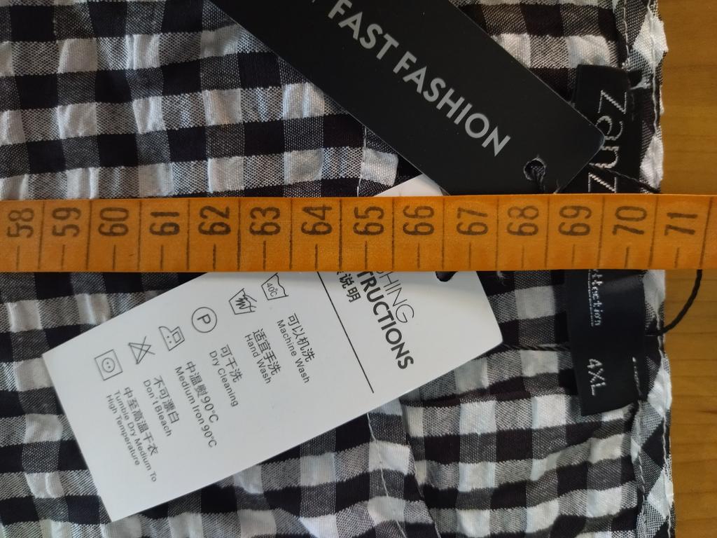 Size 52 is huge. And as always, there are no darts. The material is pleasant, seersucker