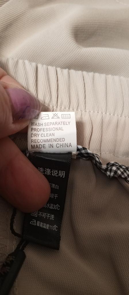 Line dry in the shade, Do not bleach, Dry clean, Hand wash in cold water, Iron at temperatures below 150°C