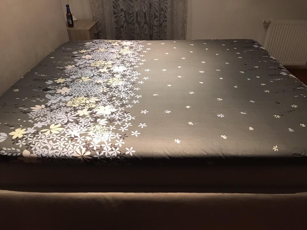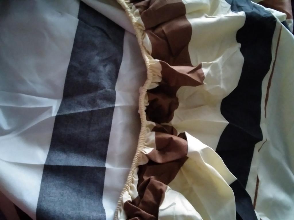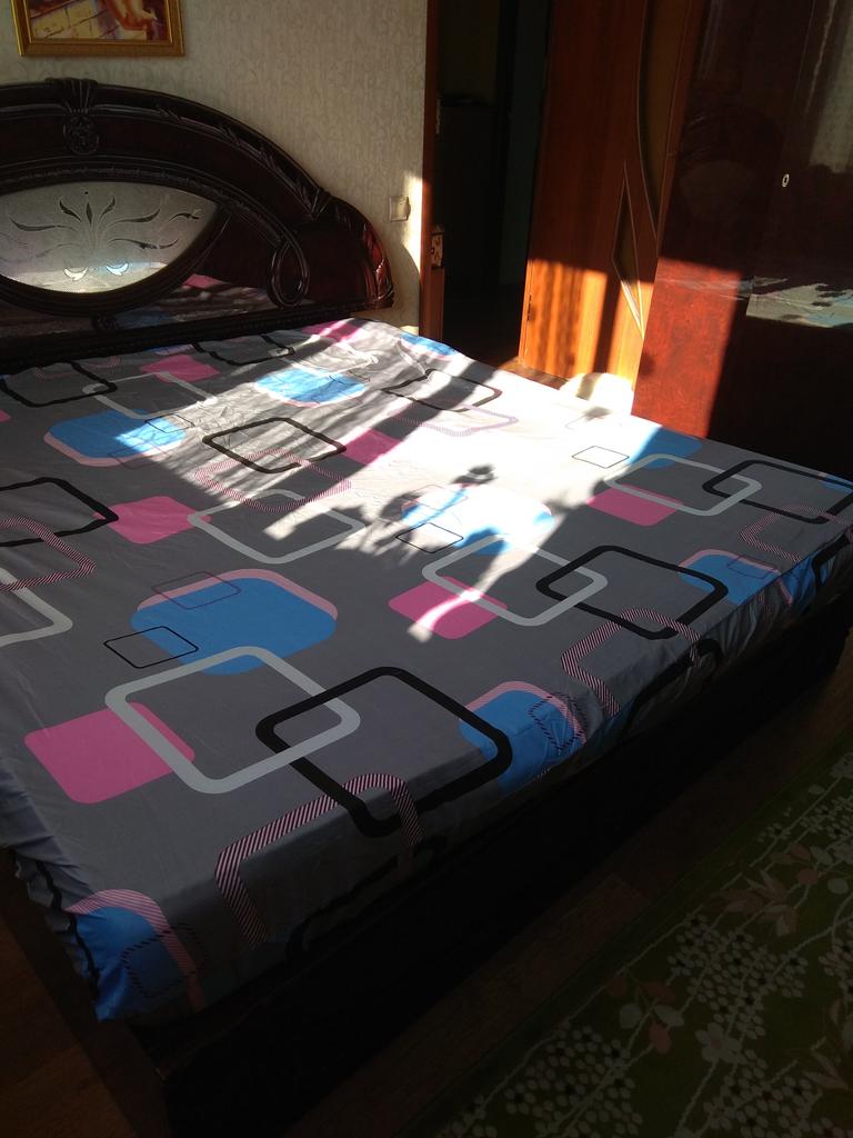 The size matches, there is a headroom. For a mattress 200*200 is quite enough. The fabric is thin, like a regular polycotton set.
