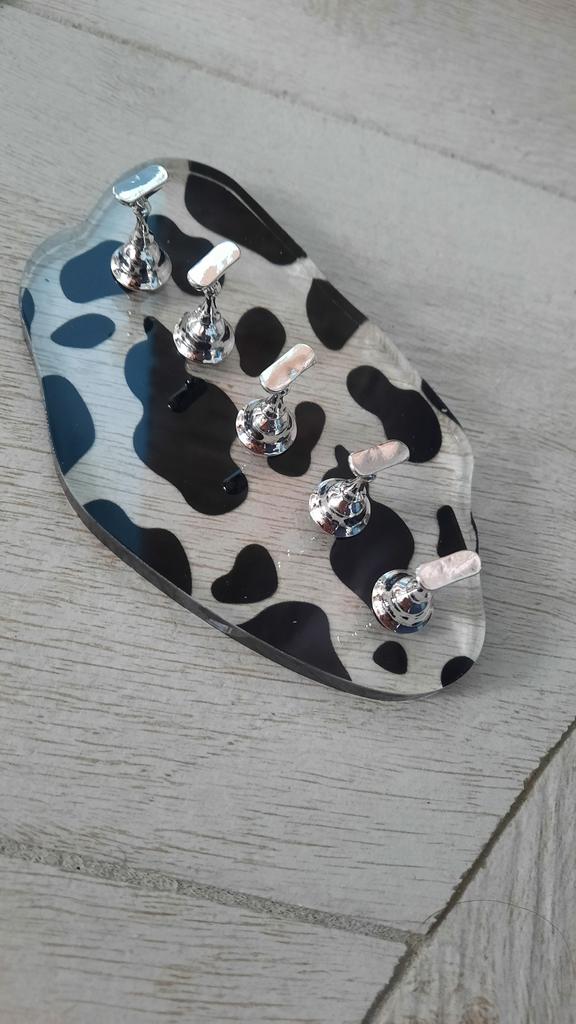 1Pc Milk Cow Magnetic Base 5Pcs Nail Tips Holders Nail Art Display Practice Stand Nail Polish Color Chart Showing Shelf