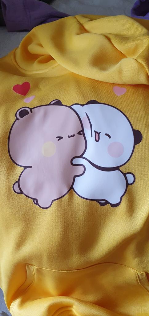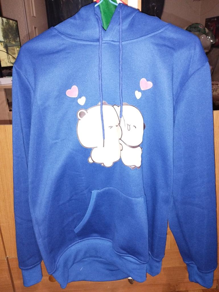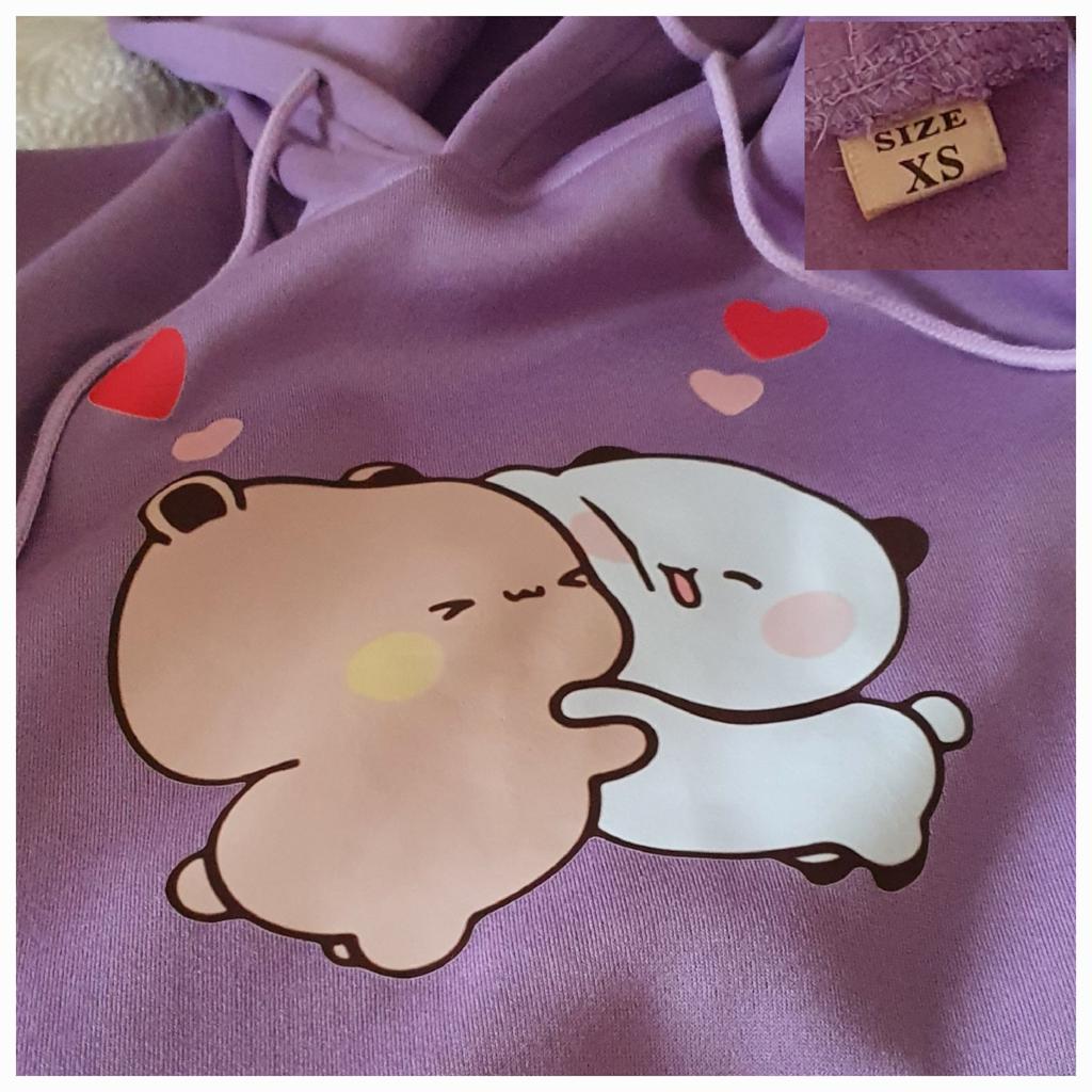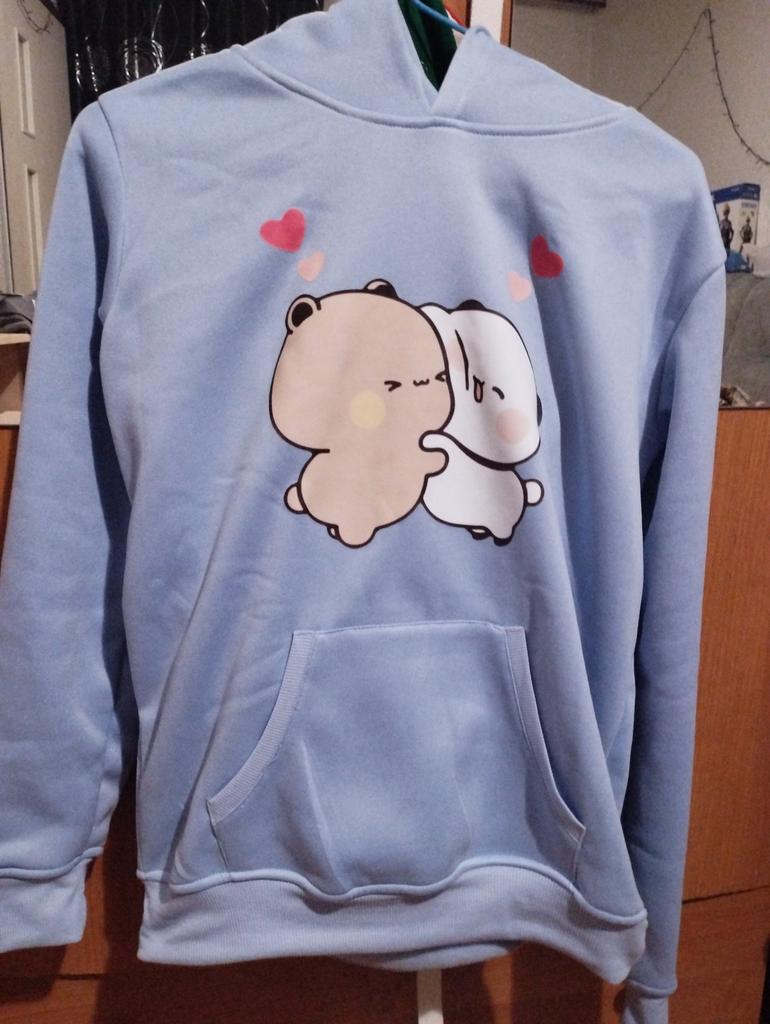 Kawaii Hoodie Panda Bear Cartoon Bubu Dudu Printing Girls Oversized Sweatshirt Spring/Autumn Light Blue Tops Long Sleeve Pocket