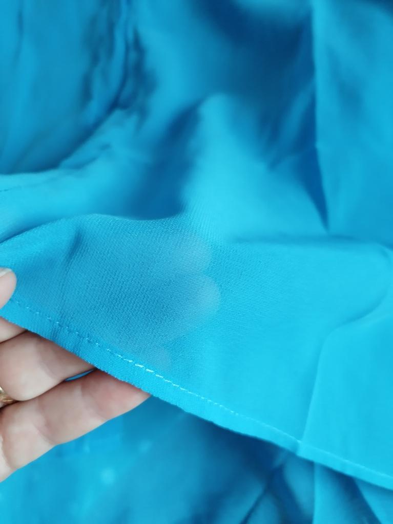 The blouse is beautiful, but the sewing is not neat, the threads are sticking out, somehow it is not sewn very well.