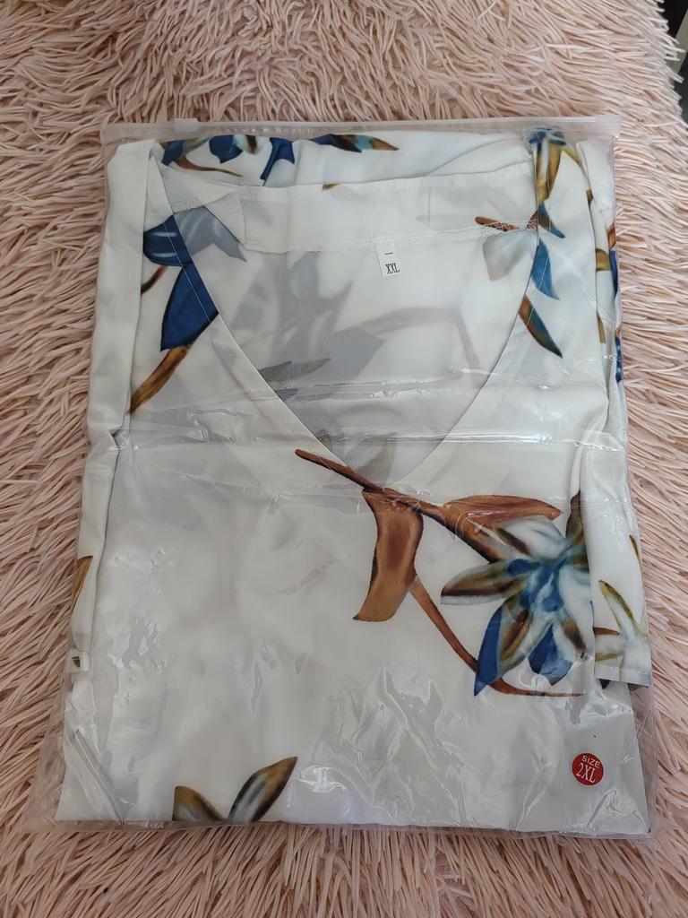 The overall package arrived open. This dress 28XX3MGW is out of stock. I want my money back for it. The package arrived this way open. THANKS 1 dress received today 05/14/2024
