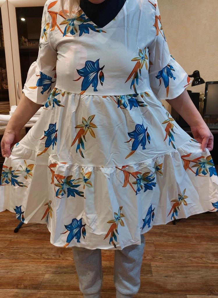 Beautiful light dress. Guessed the size right. Thank you to the seller.