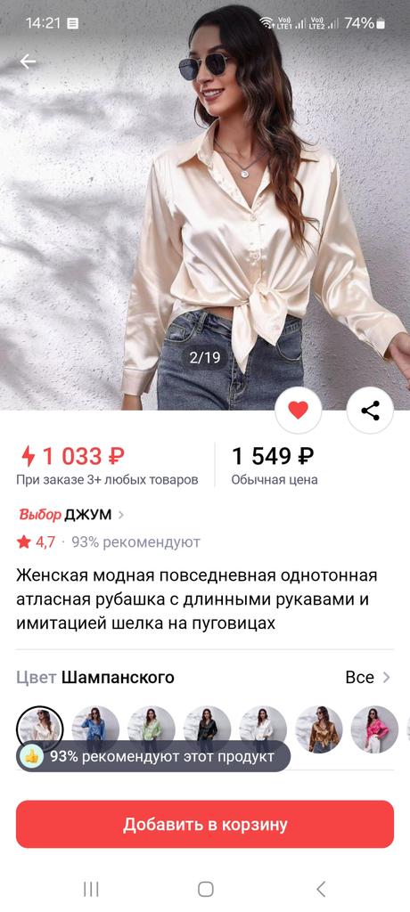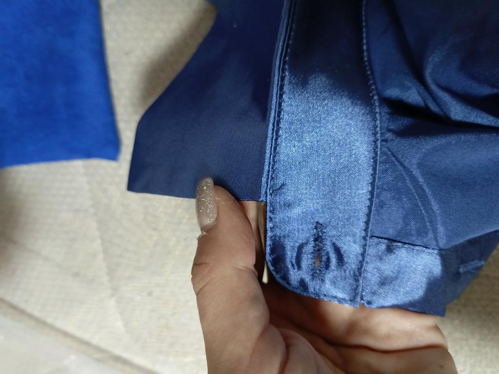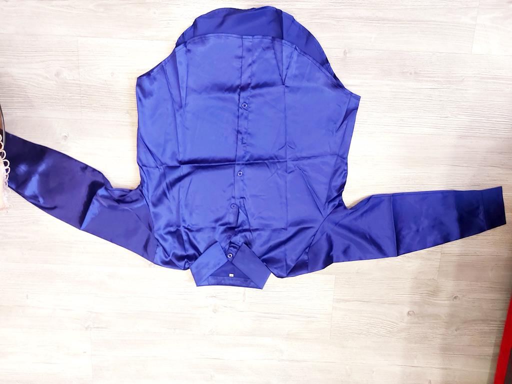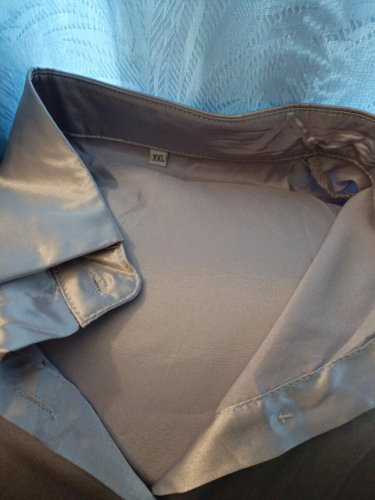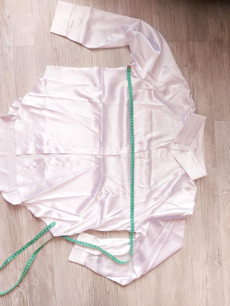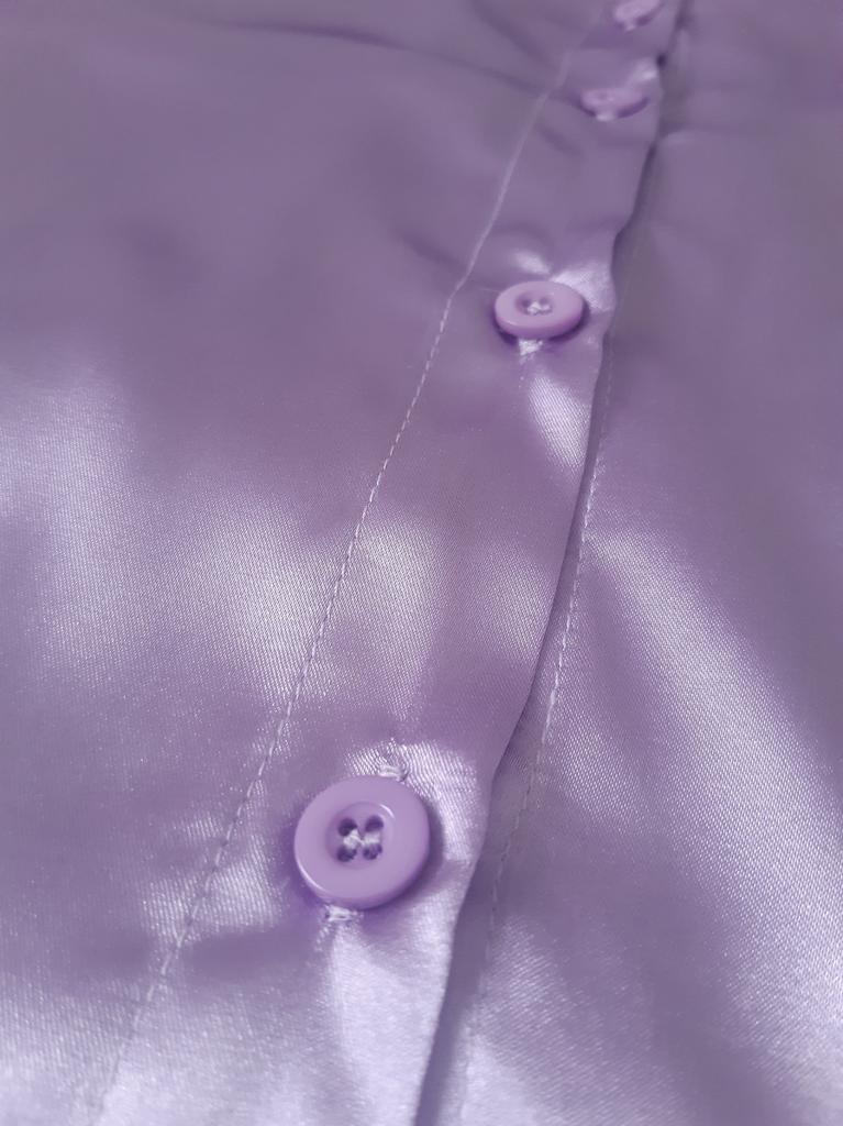 Blouse of high quality tailoring, the color is a little darker than in the photo. Satin, shorter at the front than at the back. Very beautiful, I recommend it.