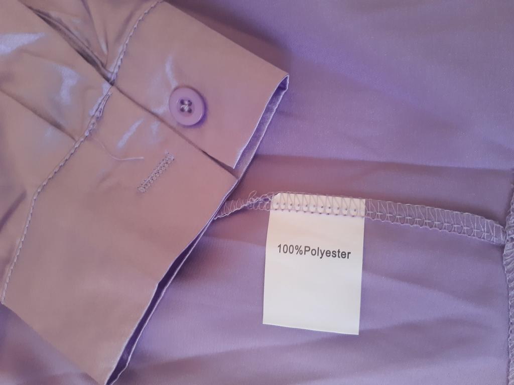 Shiny cheap, short sleeves. The back is too long for the front