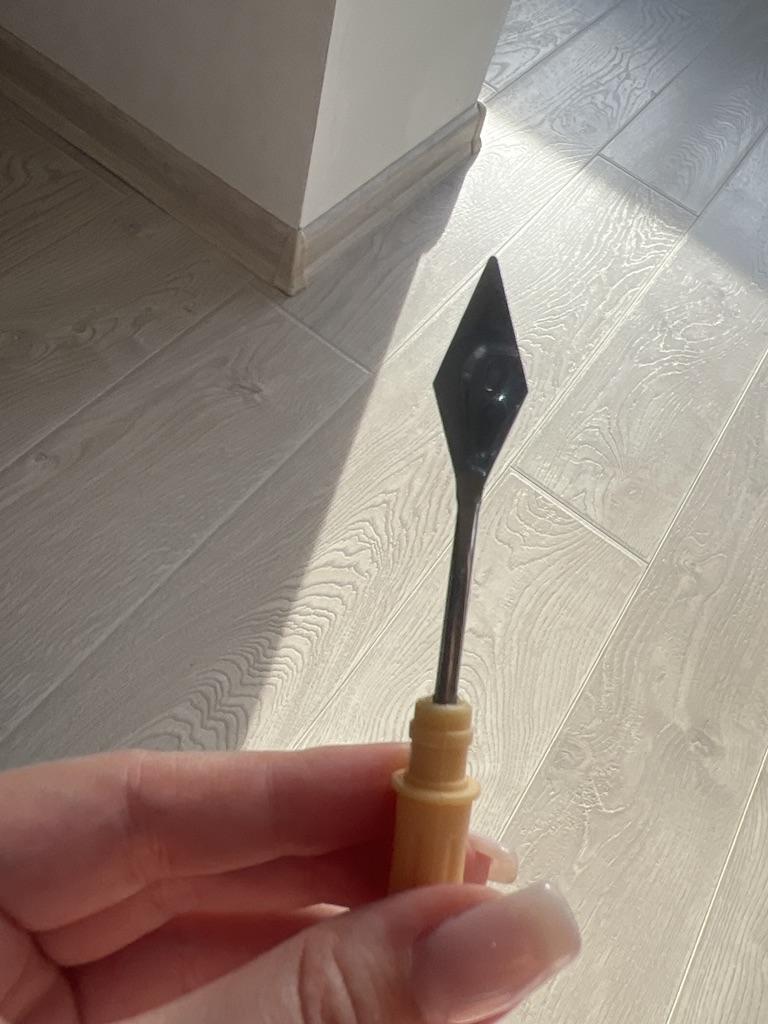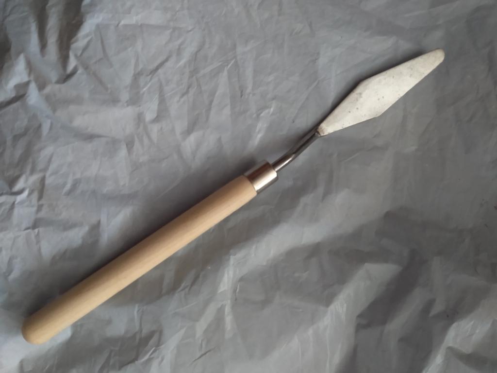 It looks like a good palette knife, but not for painting but for cleaning the palette of paints. A very hard metal, it does not have the necessary elasticity, so it is not for creativity.