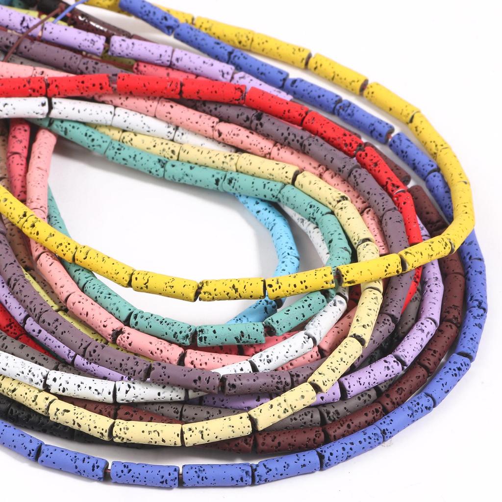 4x13mm Multicolor Rondelle Column Tube Lava Stone Loose Spacer Beads For Making Jewelry Handmade Diy Bracelet Craft