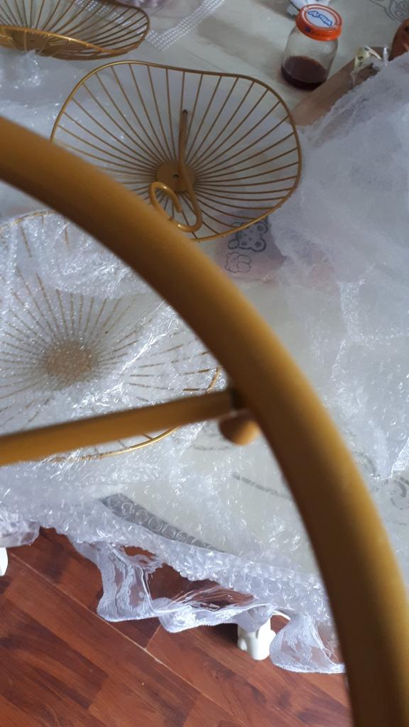Bolts for fastening were not put to the fruit bowl and there is no holder (rack) for the plate