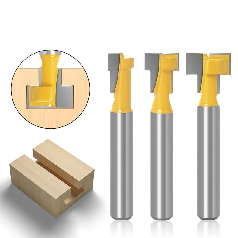 3pcs T-Track Slotting & T-Slot Keyhole Cutter Wood Router Bit Steel Handle 3/8'' & 1/2'' Length Cutter For Wood - 6mm/6.35mm/8mm/12mm/12.7mm Shank
