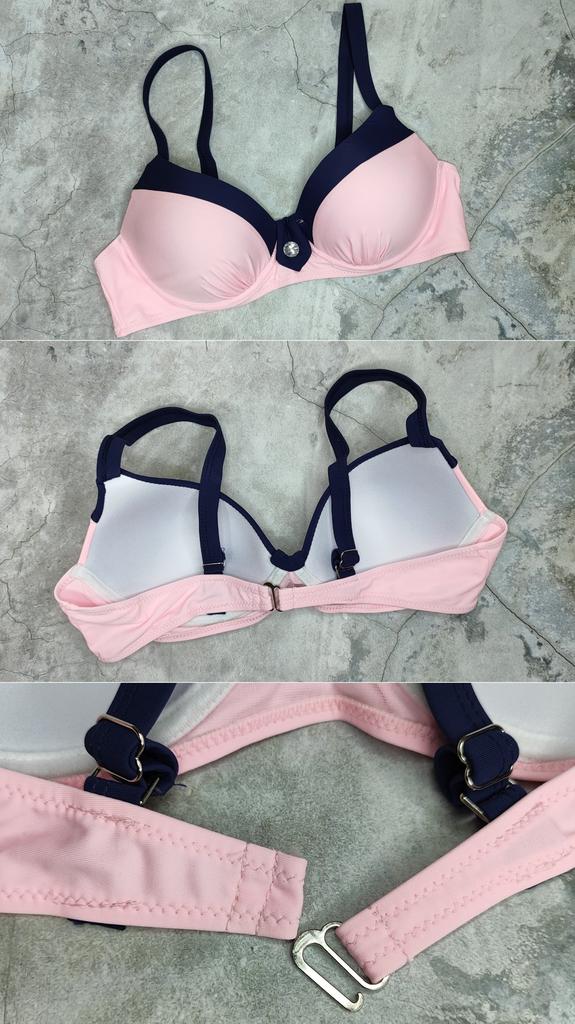 The swimsuit is not bad, when putting on the bra, first you need to fasten the clasp, and then put on the straps. For a chest circumference of 105 cm, size XXL fits snugly.