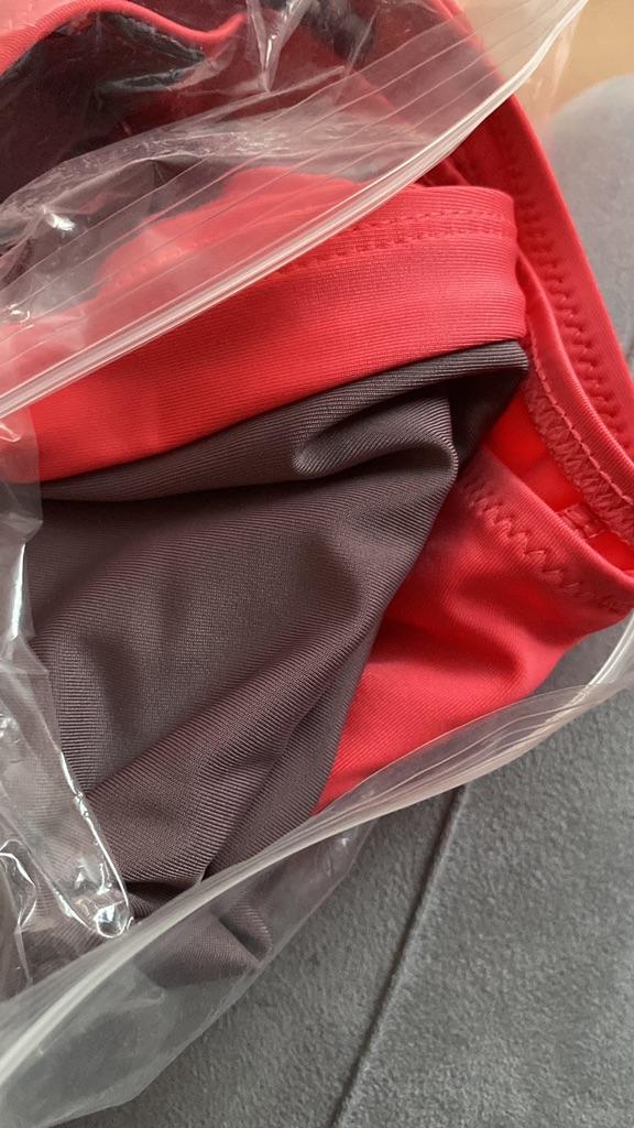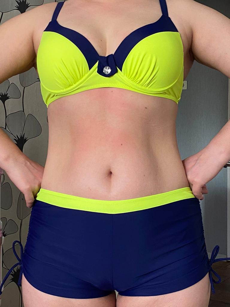 The bra was 2 sizes too big. And the swimming trunks, on the contrary, were too small.
