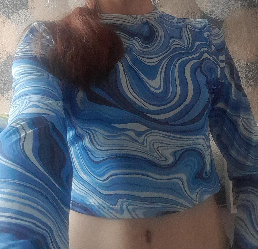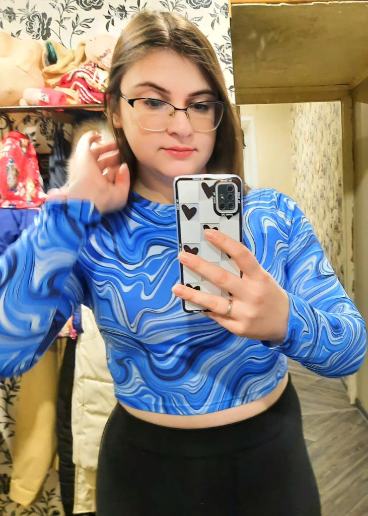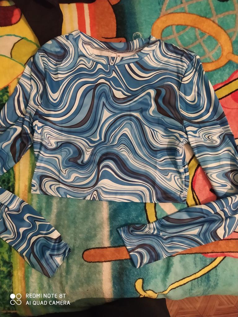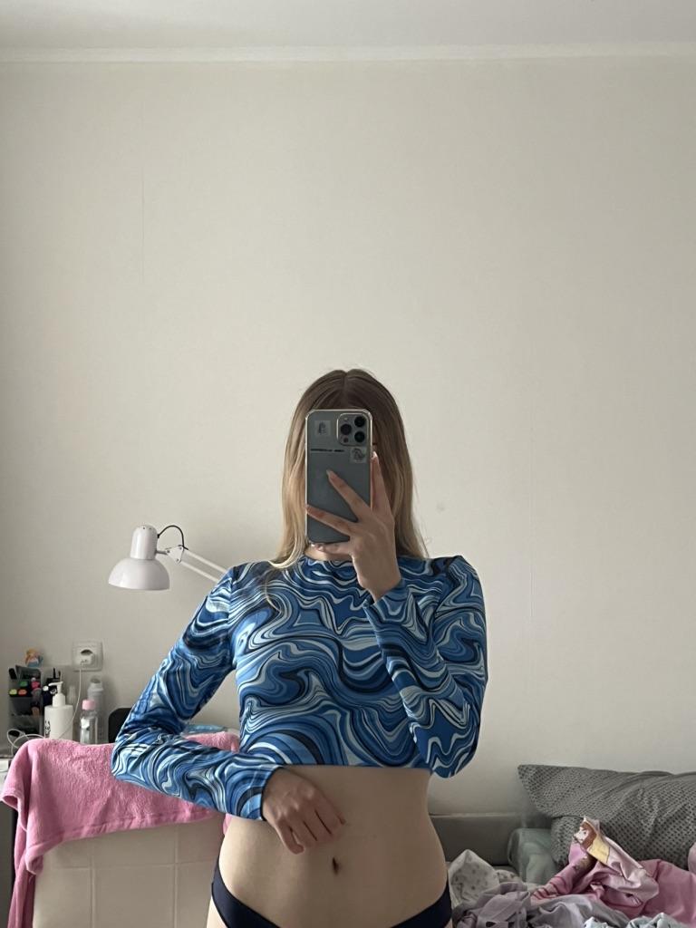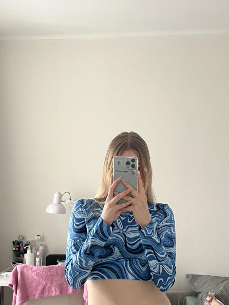 Stylish crop top 🔥 Material is like of a swimsuit, very pleasant to the body. On the parameters 84-60-85, height 167, size xs sat beautiful. Details: -the sleeves are long enough; -the model emphasize the figure; -the neck has circle form; -the top is above the navel; Can be combined with shorts, jeans,skirts . Good quality !