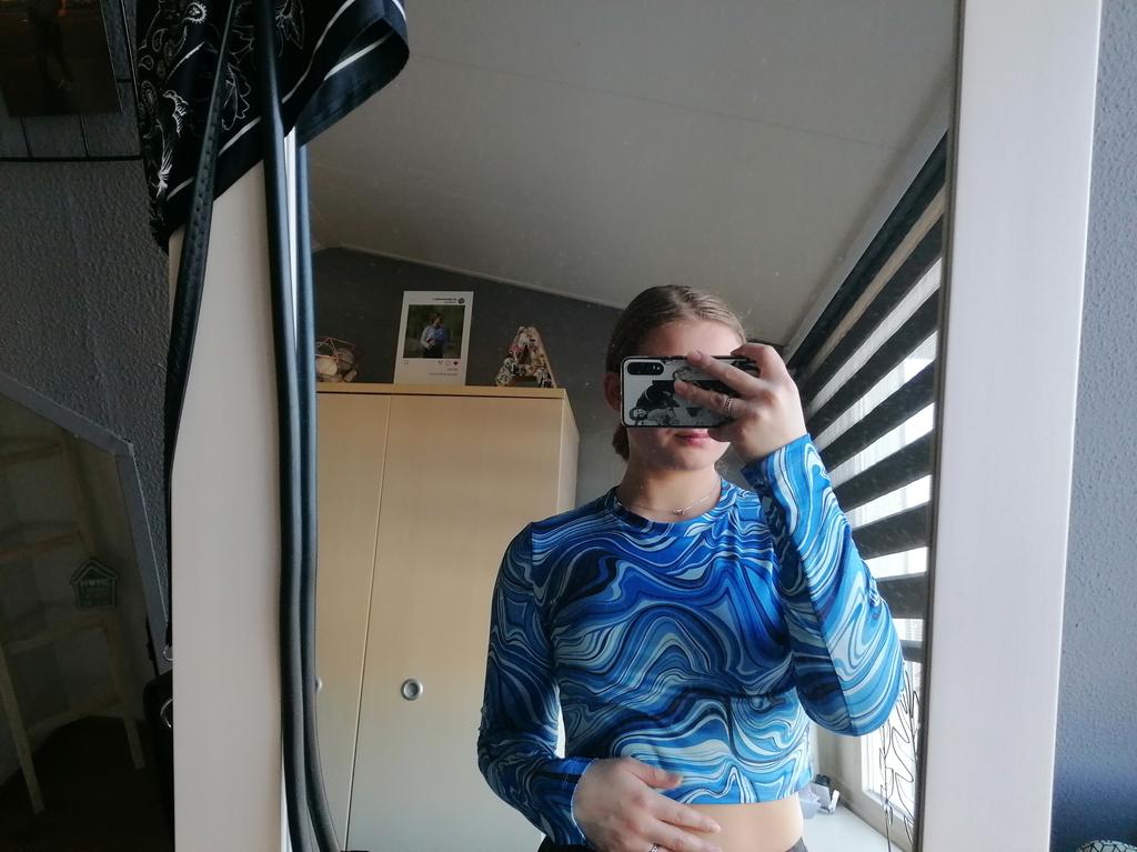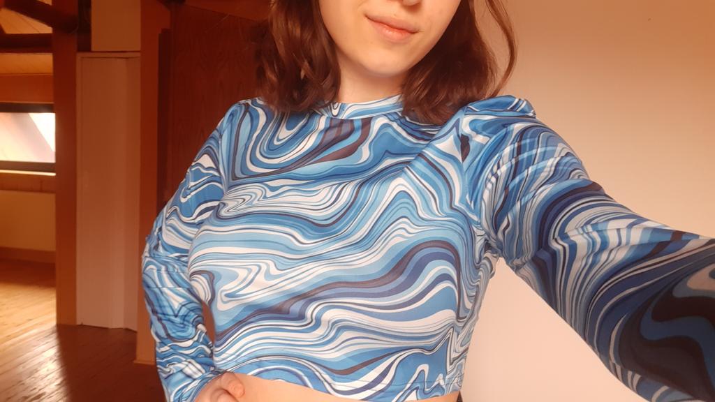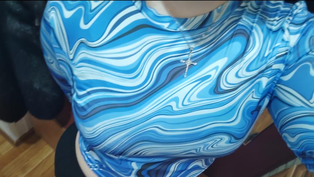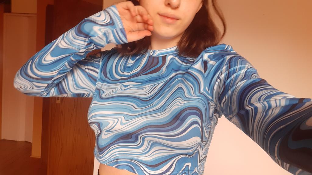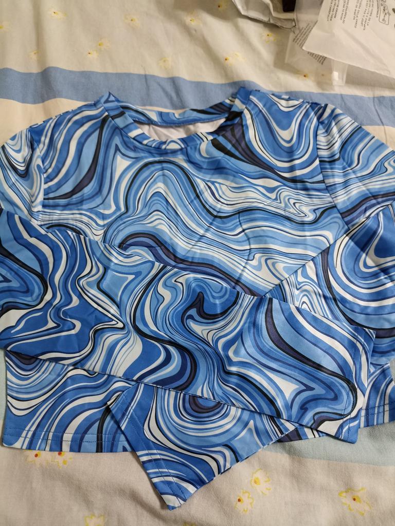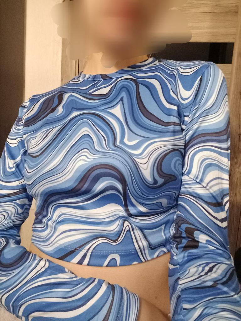 Stylish crop top 🔥 Material is like of a swimsuit, very pleasant to the body. On the parameters 84-60-85, height 167, size xs sat beautiful. Details: -the sleeves are long enough; -the model emphasize the figure; -the neck has circle form; -the top is above the navel; Can be combined with shorts, jeans,skirts . Good quality !