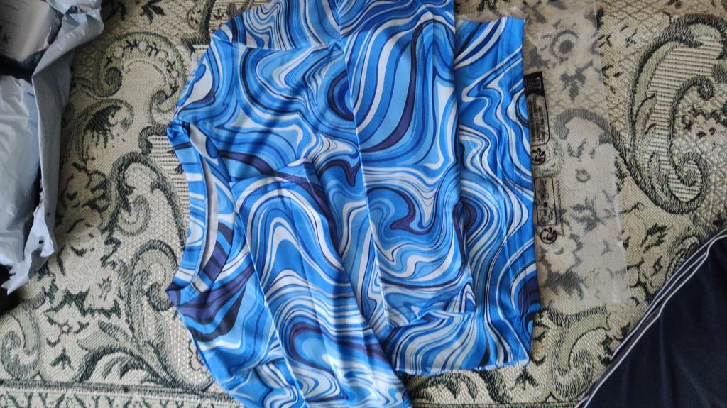 I immediately want to praise the quality of the material: it does not show through, on a cotton base - pleasant to the body. I recommend the top for purchase, the pattern is bright, as in the picture, size (M) is 44 at the same time. A nice gift for spring and summer. I definitely recommend the manufacturer and the seller. Thanks Jum...)