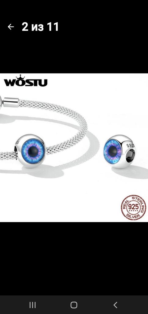 WOSTU Blue Devil's Eye Beaded 925 Sterling Silver Classic Demon Eye Charm Beads for Women Fit Original DIY Bracelet Jewelry