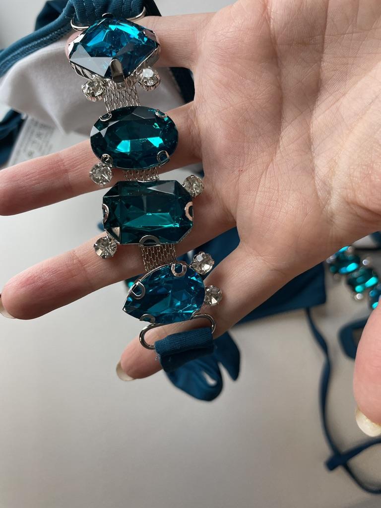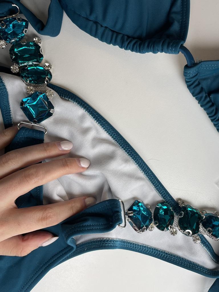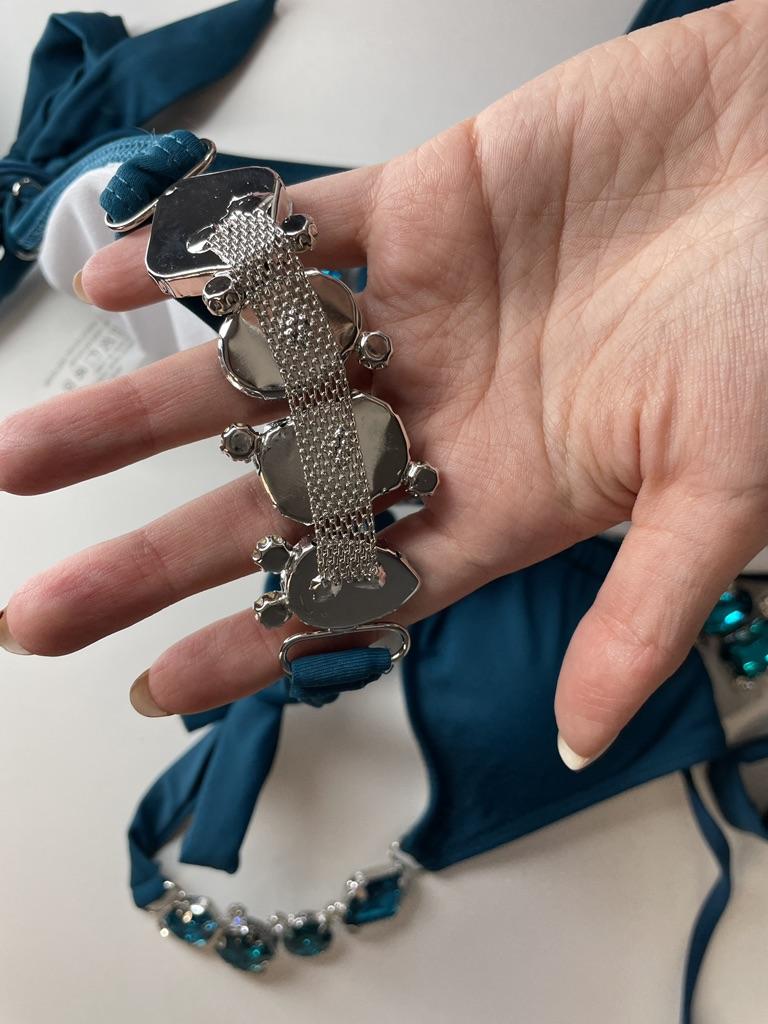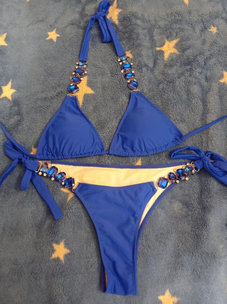 2Pcs/Set Split Bikini Rhinestones Metal Chain Pure Color Sexy Adjustable Swimwear for Swimming