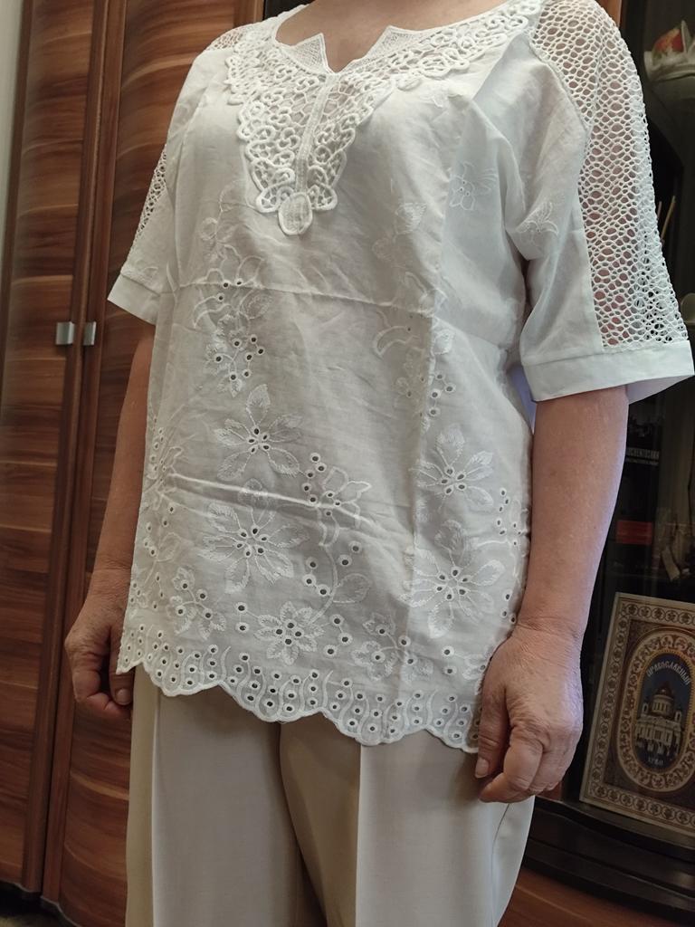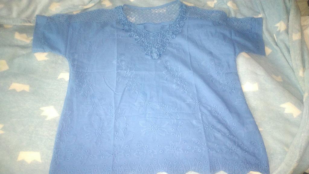 The shirt is very nice, loose, thin, batiste. Thank you Joom, the lace is very delicate. Thank you for the gift, it's very pleasant.