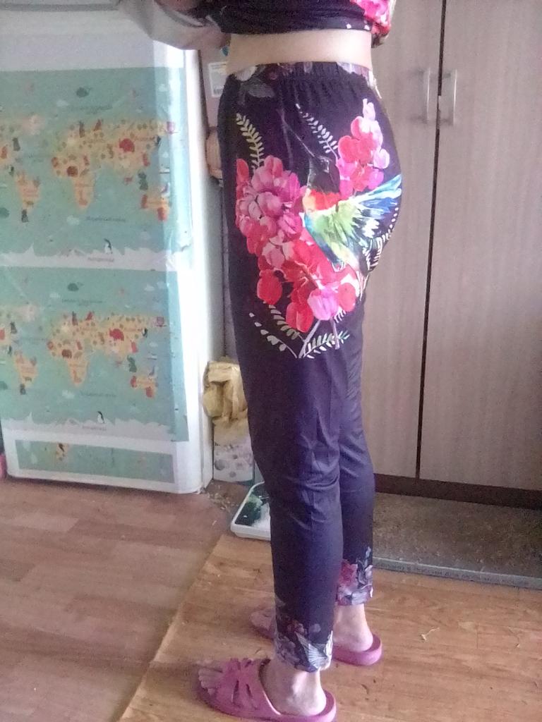 The beacon is just right, the pants are too big and even twisted. Suitable for home or sports activities, the knitwear is thin.