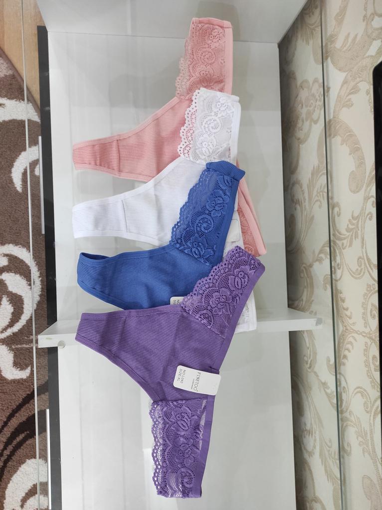 FINETOO 4PCS/Set Sexy Women Cotton Panties Lace Thong Underwear for Female Intimates Lingerie T-Back Floral Hollow Out Plus Size Panties
