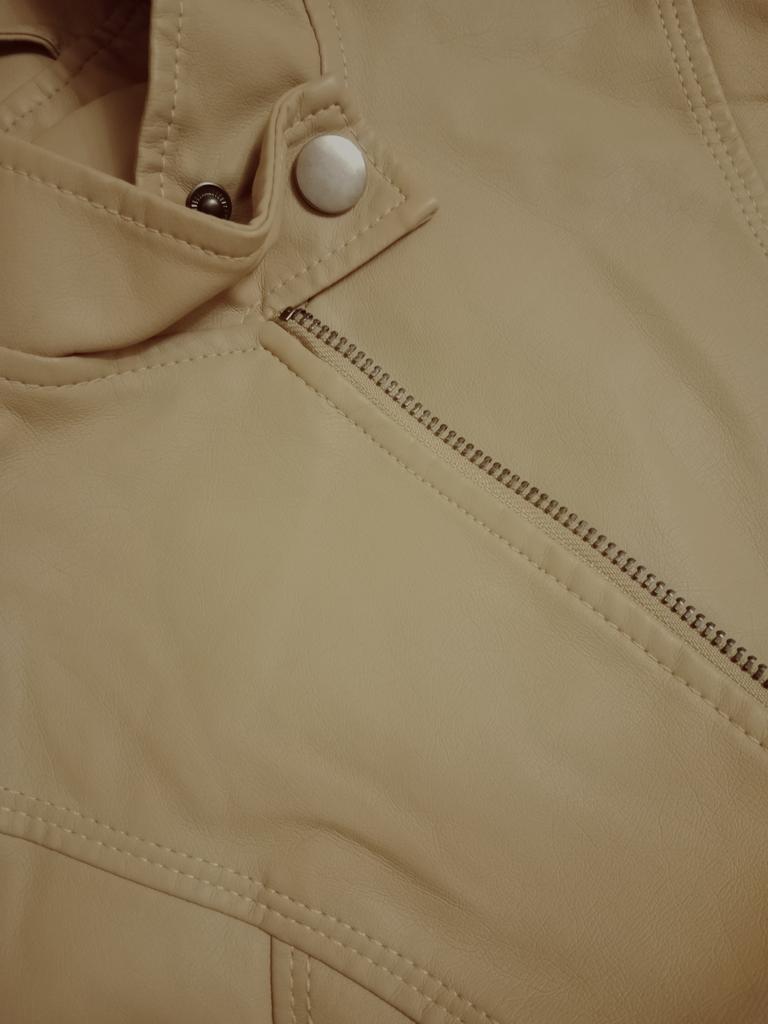 Women's Slim Fit Spring Autumn Solid Color Long Sleeve Stand Collar Leather Jackets S-4XL