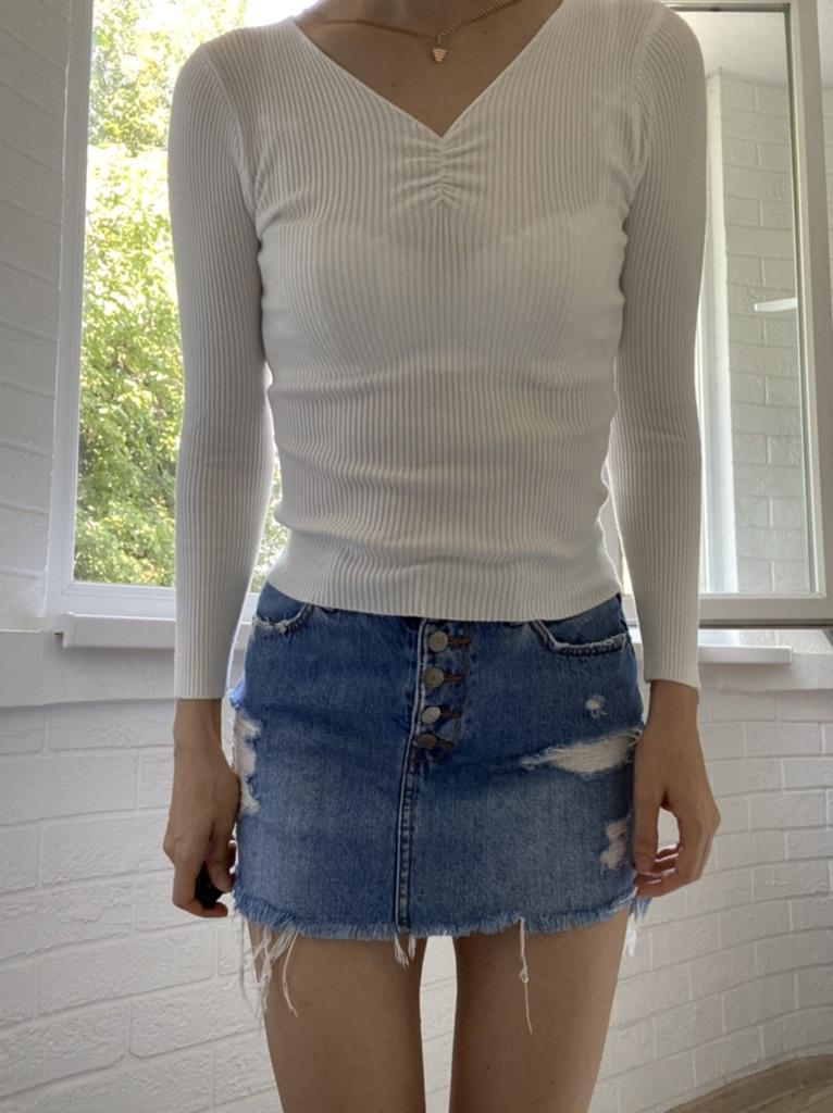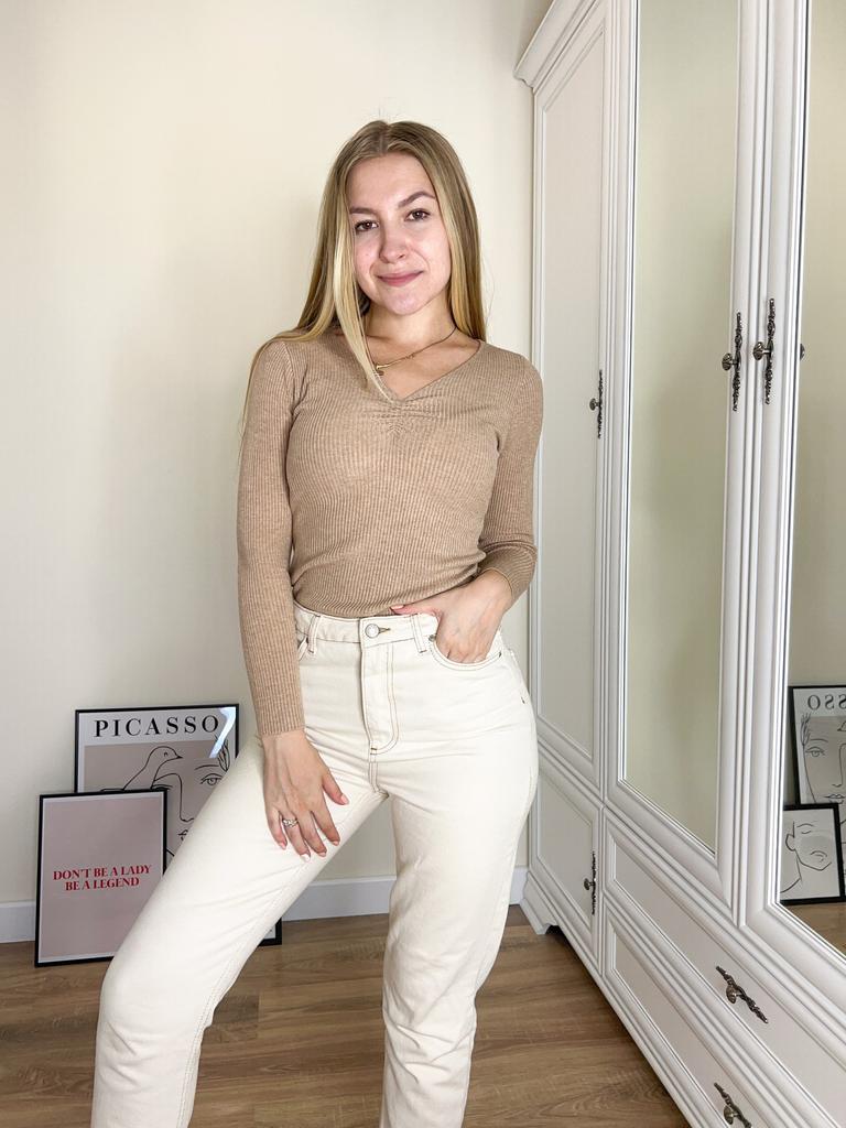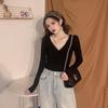 Fall Winter Women V Neck Solid Color Long Sleeve Pleated Knitted Bottoming Chic Sweater