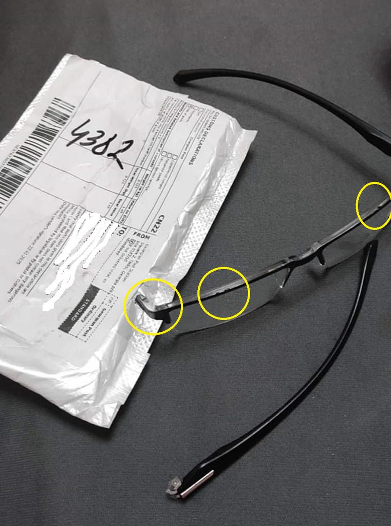I received the goods, ordered 3 pairs... there are defects, scratches and dark spots on the glass...