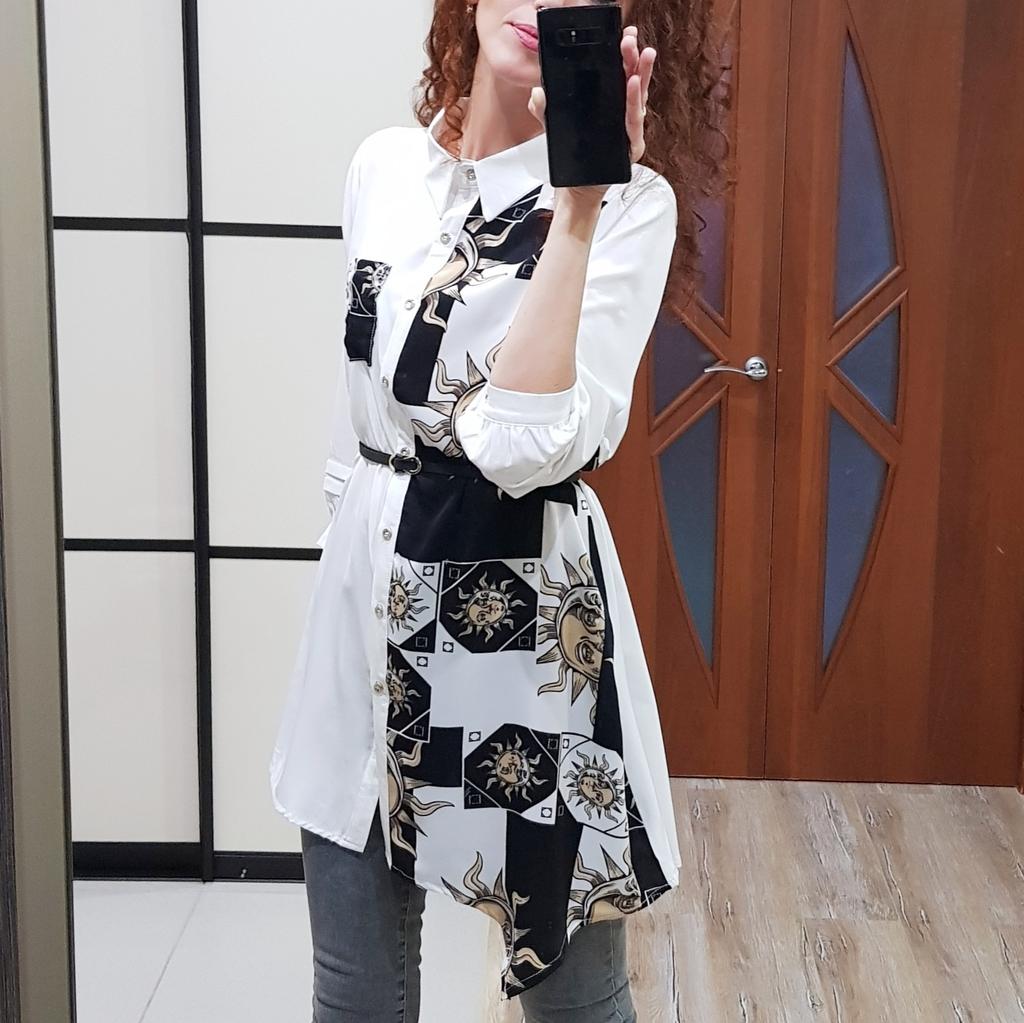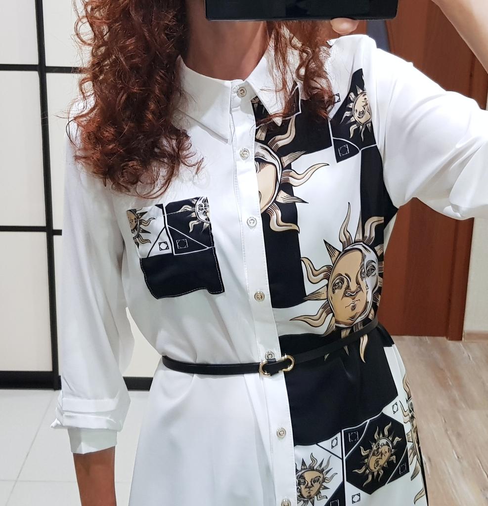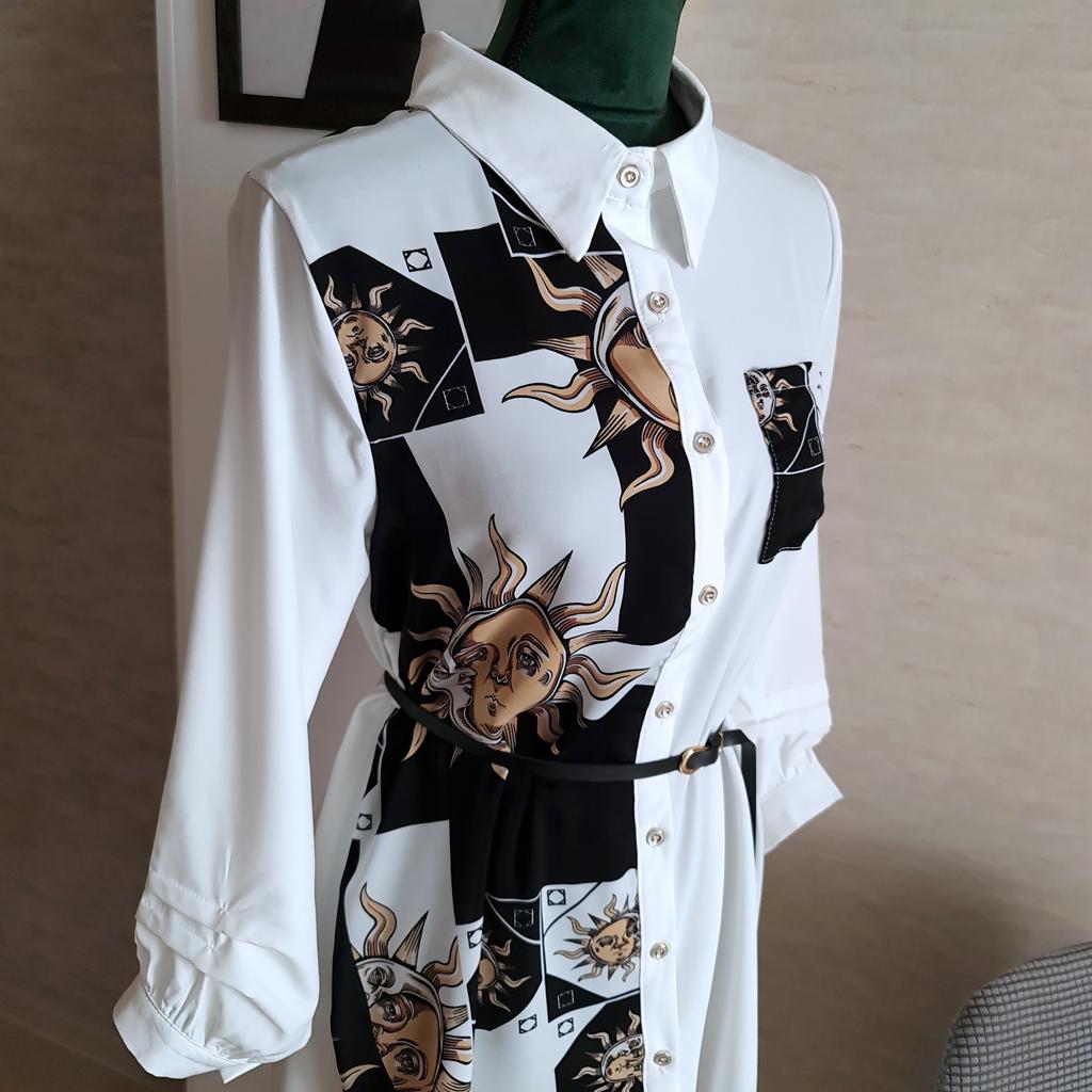[Fancy Blouse] πΏ delivery: I received the item 20 days after ordering. That's fine. size: I have the blouse in size L ordered. I wear size XS/S and it fits me perfectly. So order a little bigger. optics: The blouse is a long blouse or can also be used as a dress. It is white/black with sun applications. It has a collar and a black belt is included. Materials/Quality: The material is soft and not too thin. It's durable. It still looks good after washing. However, it is not non-iron. I think the quality is great. The blouse is absolutely wonderful, I really like it. π
