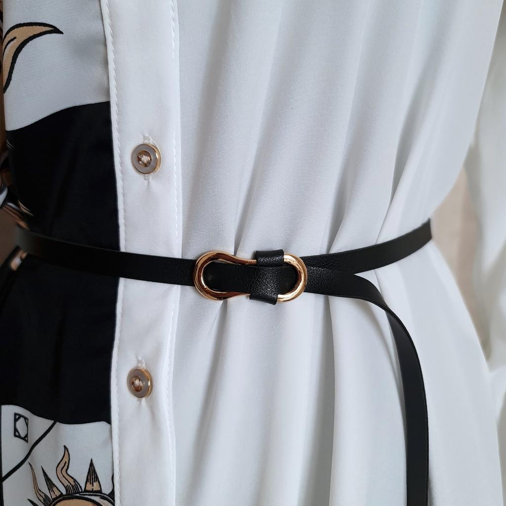 With A Belt New Fashion Design Narrow Slim Minority Medium Long Dress Women New Spring Black White Student