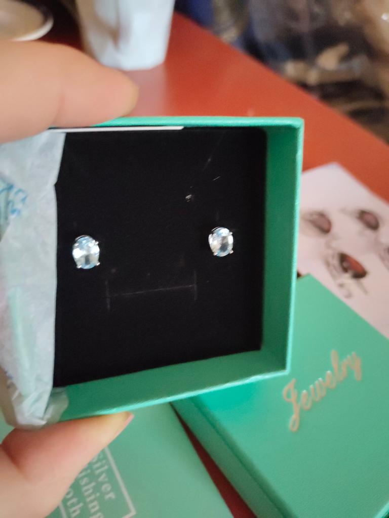 Simple Natural Gemstone Earring Studs In 925 Sterling Silver with Sky Blue Topaz Oval 6*8mm Earring Office Girls Daily Use