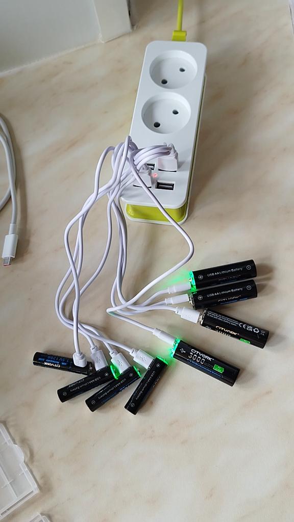 Out of 4 AA batteries, only 1 is charged ... Correction of the review: So I left 4 pcs of AA batteries in the charger, the consumption was 0.3A..., 1 pc flashed and charged, the others...nothing...only after 0.5 hour did the other 3 pcs start, which did not flash slowly, faintly to flash, that one was charged within 1 hour. In the end, it took about 3 hours to charge the others! There were no instructions attached to the product, so you understand my concerns. I don't know why the other 3 behaved like that, they were probably completely beaten.... I hope they will continue to be fine...