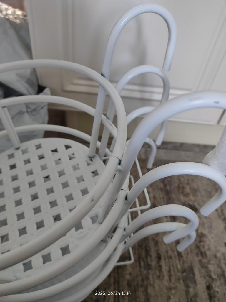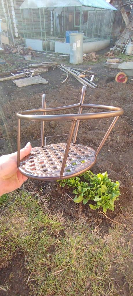 The flowerpots are good, metal, strong. But the handles for the support are welded incorrectly. On one, the flowerpot gets a 30° tilt, on the other it doesn't reach the grate. The third one holds well and the support is good. My son worked on two and everything worked out.