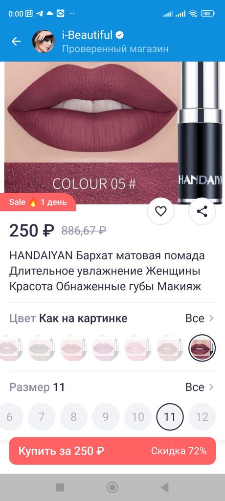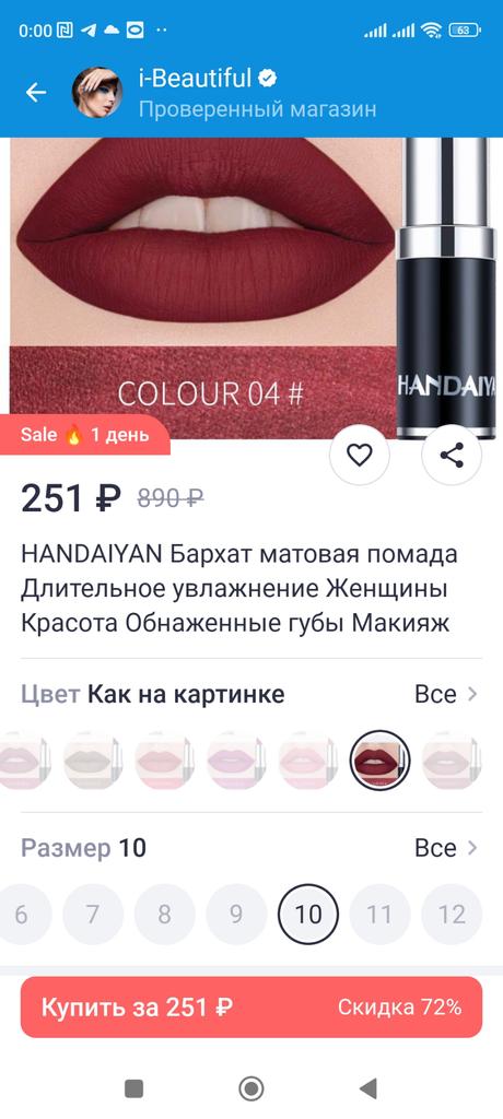 A good quality lipstick, the smooth and creamy texture looks good on the lips for a long time, thank you very much to the whole Joom team!!! I wish you a great evening!!! I recommend the product and the company Handaian!!!