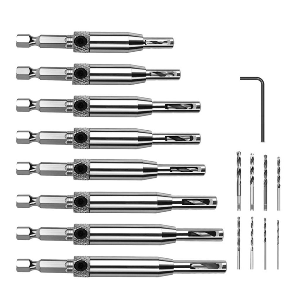 16Pcs Self Centering Drill Bit Set with 1 Hex Key for Woodworking Window Door Hinges 16Pcs