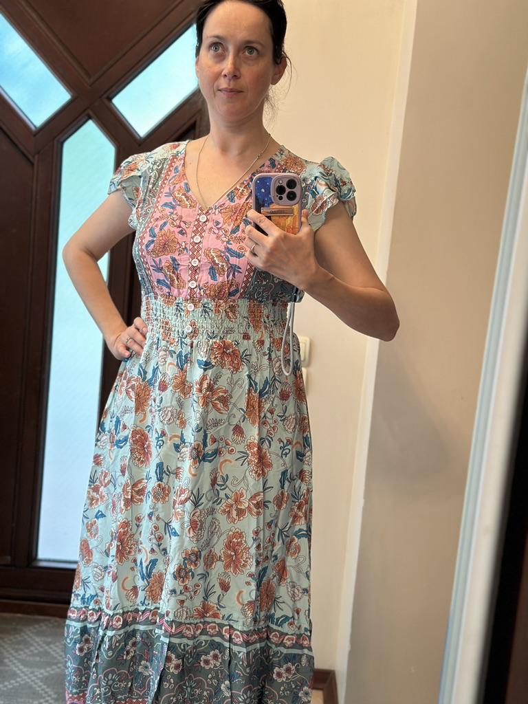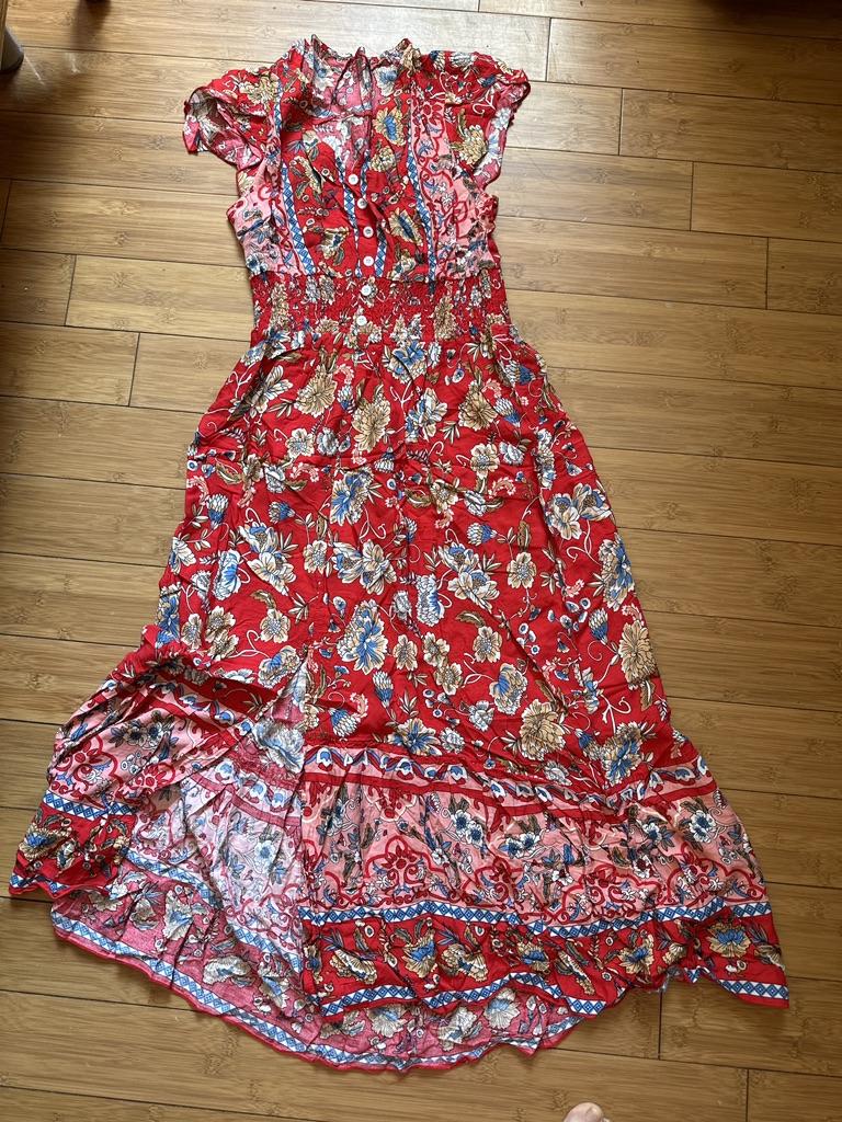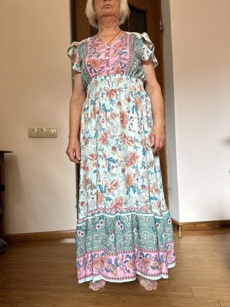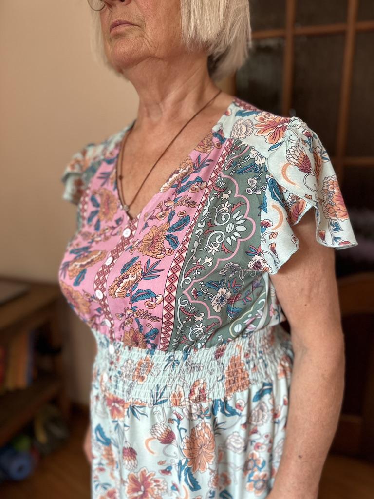 YYFS Women's Vintage Bohemia Fashion Summer Floral Print Short Sleeve V-Neck Casual Dresses