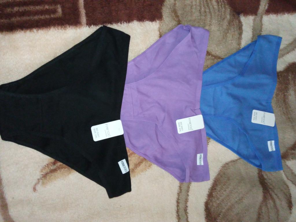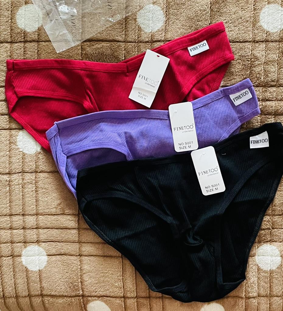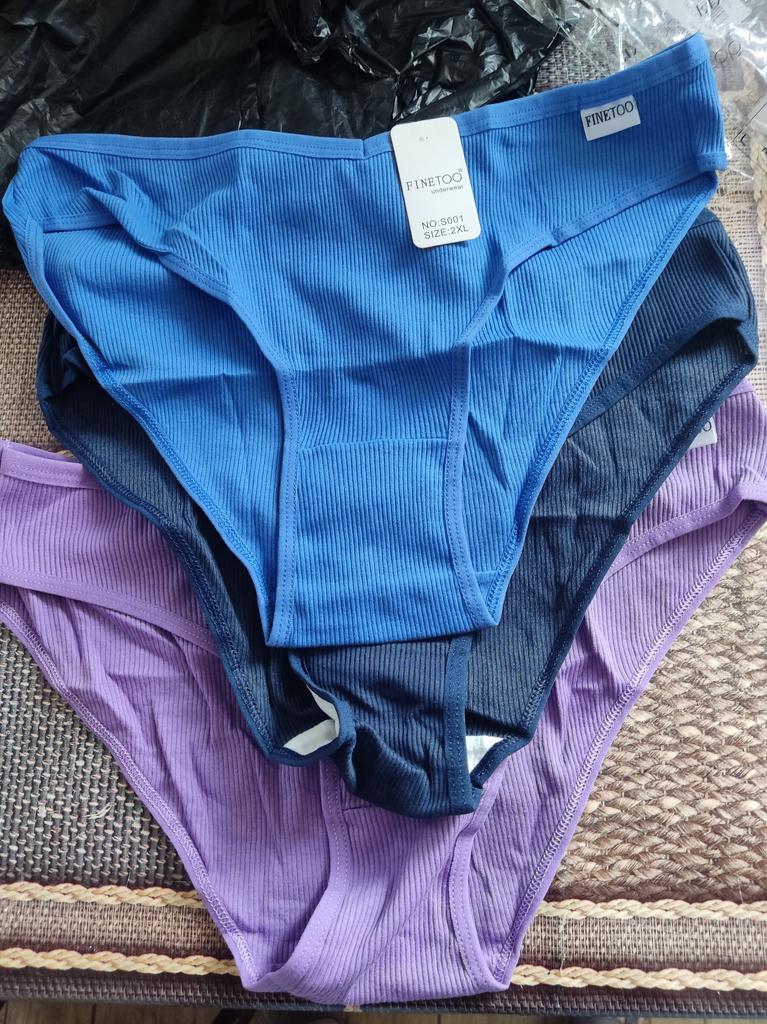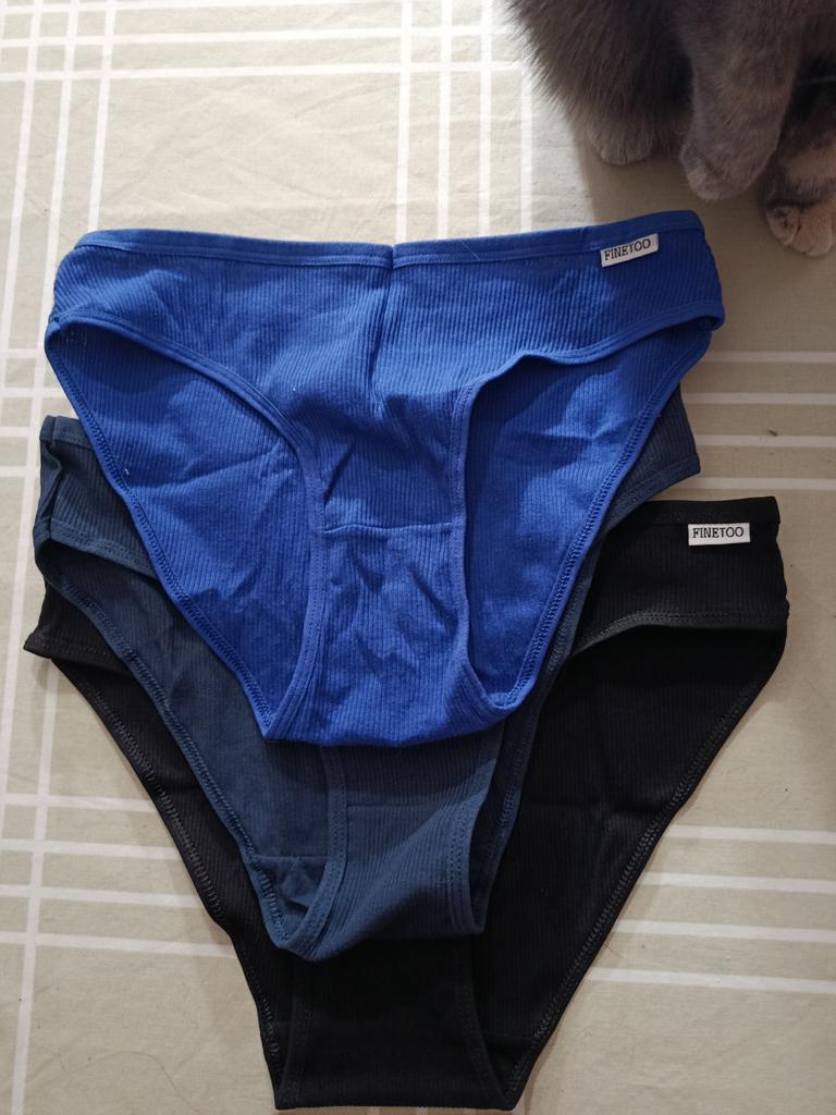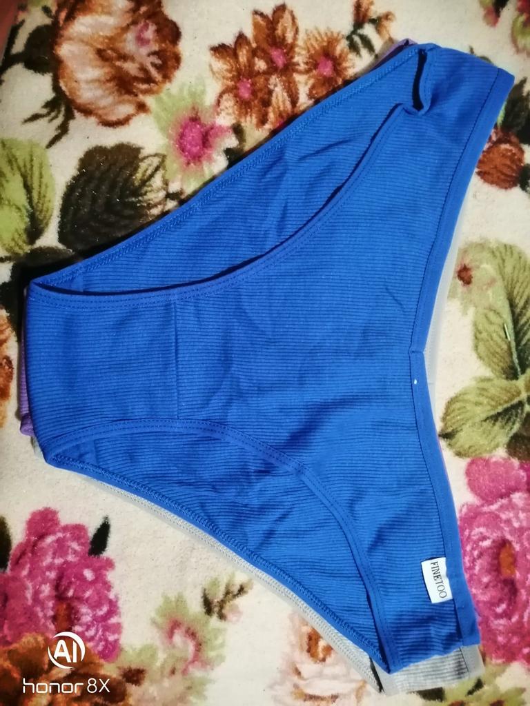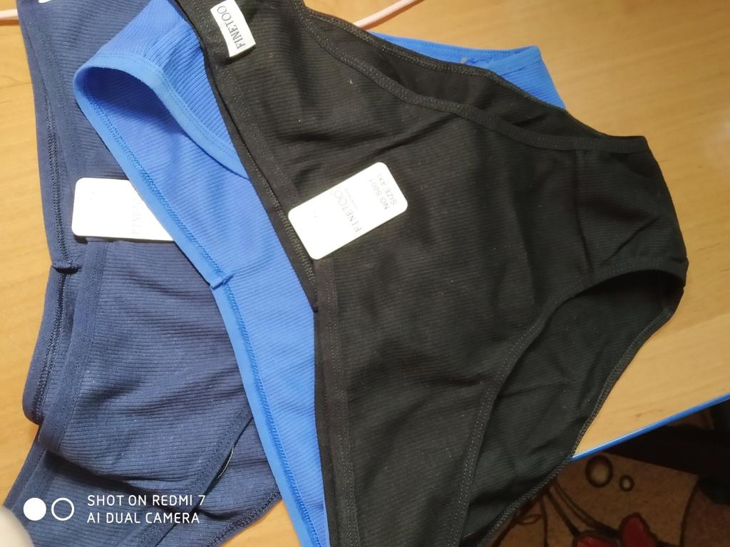 The colors do not correspond to the ordered ones. All three panties are of different sizes. The largest are black, the smallest are blue. Only medium - dark blue ones fit. I like a low fit, but here the fit is very low: from behind, the buttocks are visible, if you pull it up a little in front to cover the pubis. The elastic band of the panties is stitched in the front and back for a triangle effect... But it had to be opened, because it pressed and rubbed during the day. Either my skin is sensitive, or the style is not well thought out. The fabric of the panties is impeccable, there are no complaints about the tailoring, except for that rubber band stitched in the center. I do not recommend.
