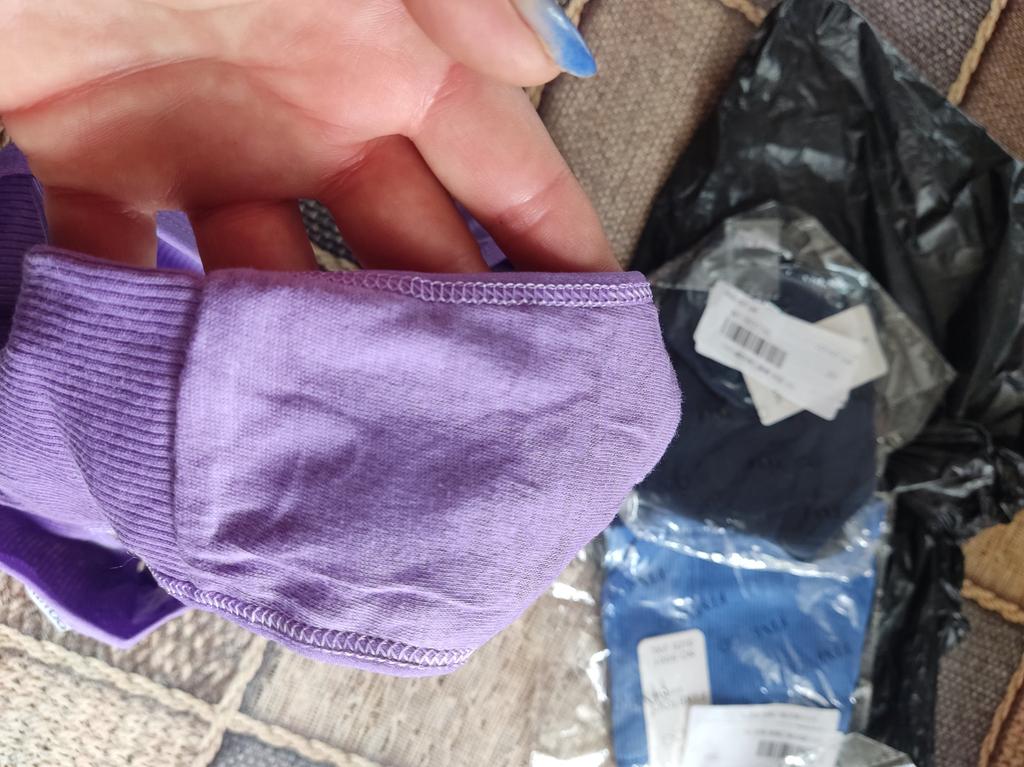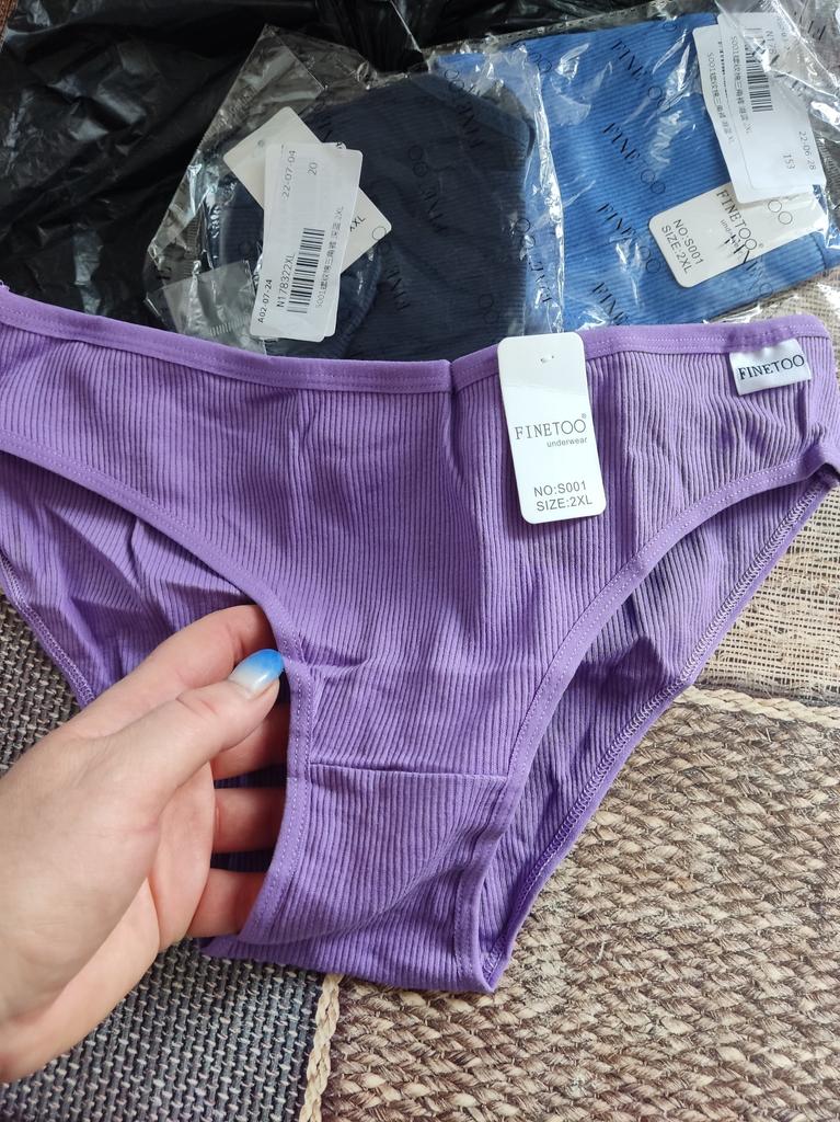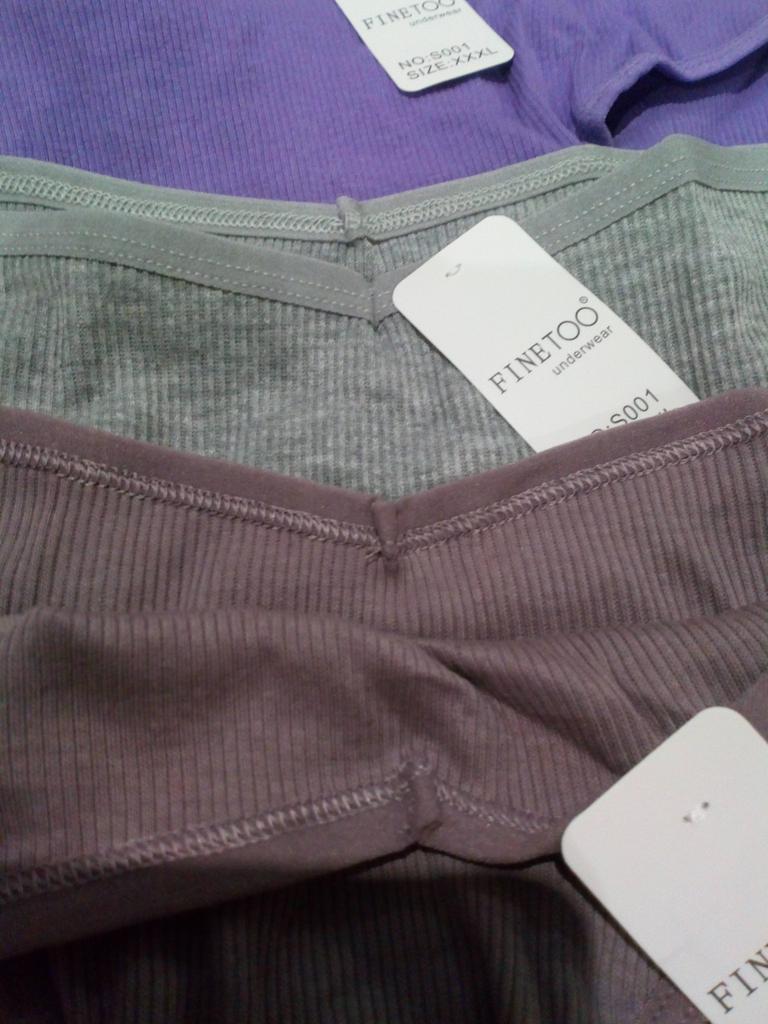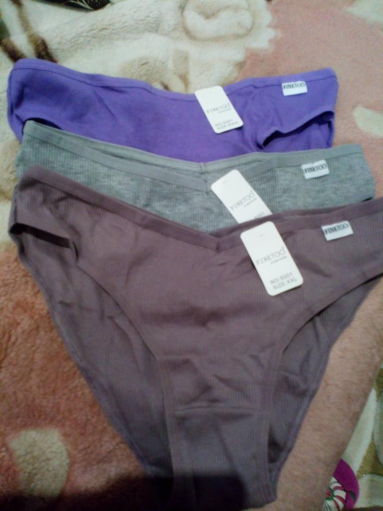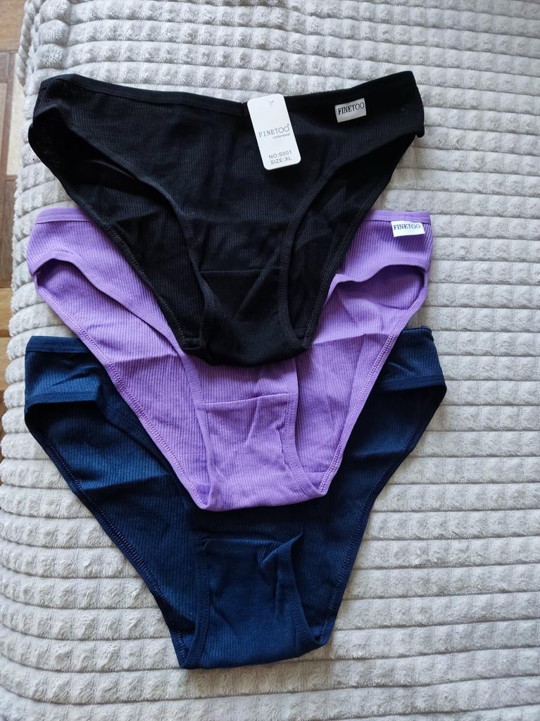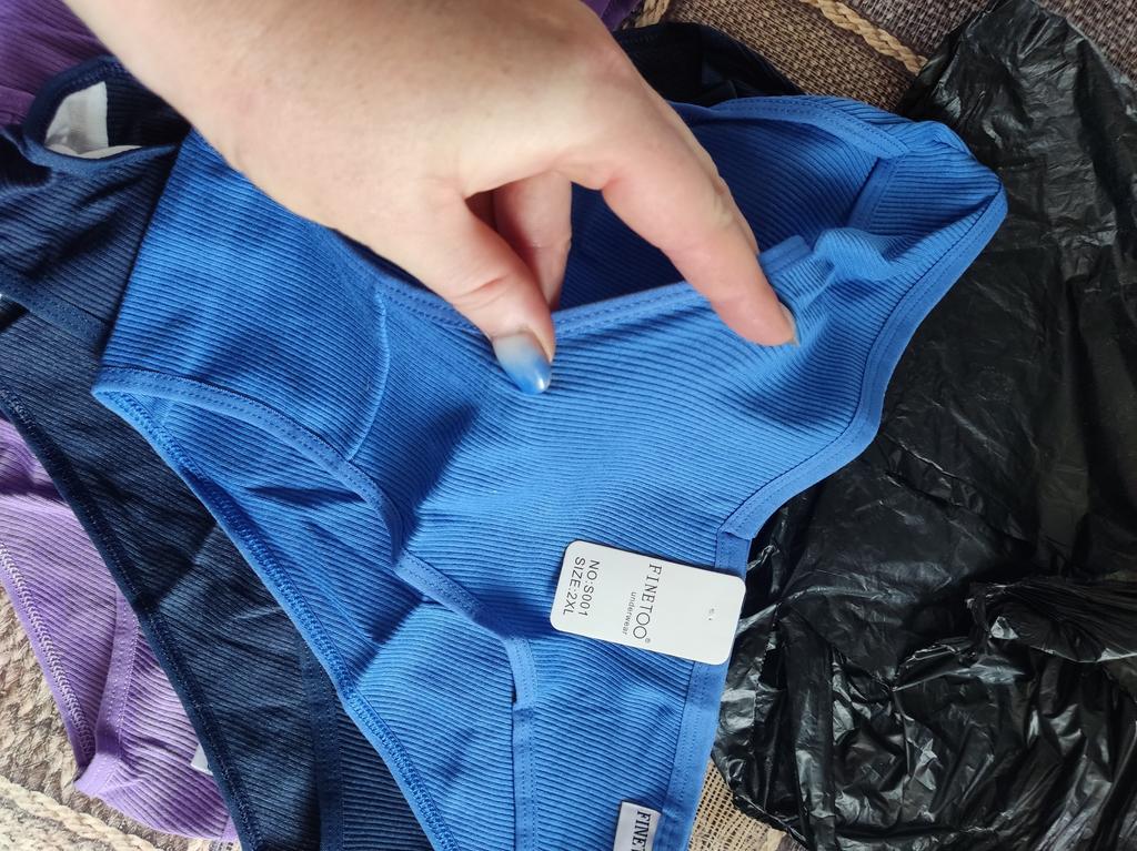 The colors do not correspond to the ordered ones. All three panties are of different sizes. The largest are black, the smallest are blue. Only medium - dark blue ones fit. I like a low fit, but here the fit is very low: from behind, the buttocks are visible, if you pull it up a little in front to cover the pubis. The elastic band of the panties is stitched in the front and back for a triangle effect... But it had to be opened, because it pressed and rubbed during the day. Either my skin is sensitive, or the style is not well thought out. The fabric of the panties is impeccable, there are no complaints about the tailoring, except for that rubber band stitched in the center. I do not recommend.
