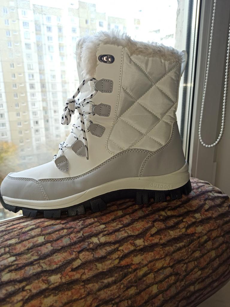 Boots made of artificial leather and textile. Neat in appearance. For my 36, I took a 37 - it's normal for a thin sock. Comfortable, light. It seems that they will not slide on slippery surfaces. They arrived in a month. Respect and thanks to Ukrposhta - they work very well during the war. I am adding them. I wore them several times. As they say, I put them on and forgot them. They are ideal for ice cream. I will also buy them for my mother.