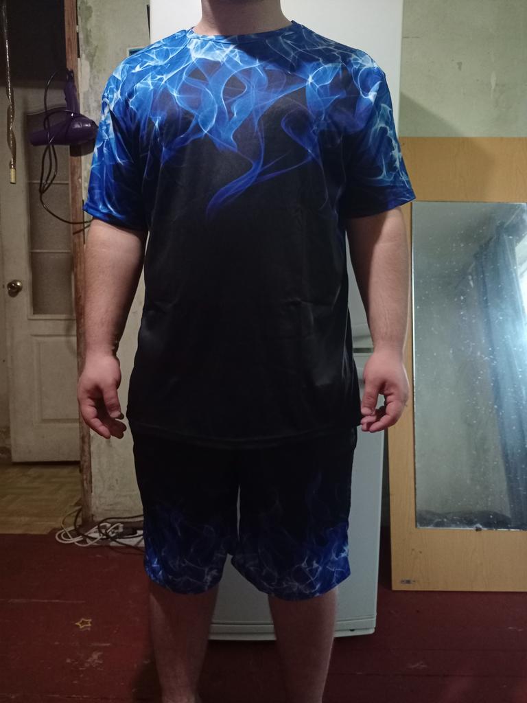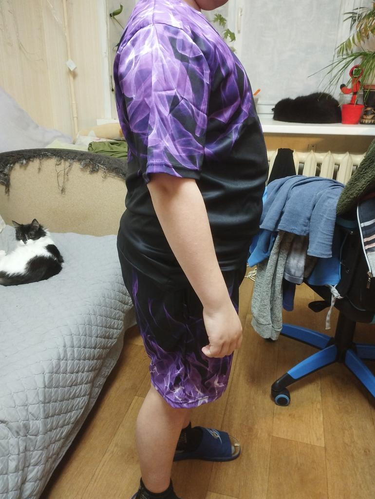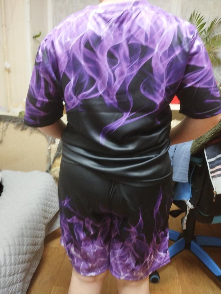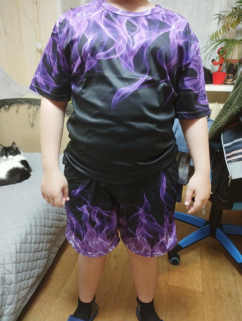Photo. Expectation/reality. The color on the shorts and T-shirts do not match, it feels like they took from two different suits. The location of the print does not match the picture either. Already removed the same suit, in a different size, everything was perfect! This one is just money thrown away.!!! ps Thank you Service support, the entire amount for the order was returned in full.
