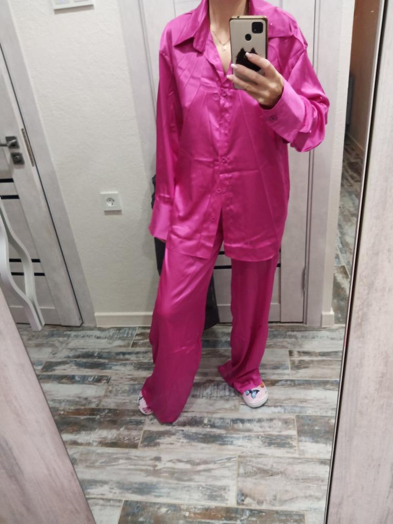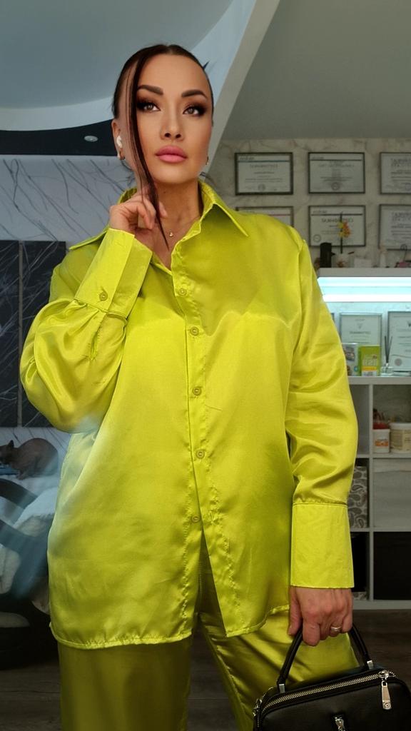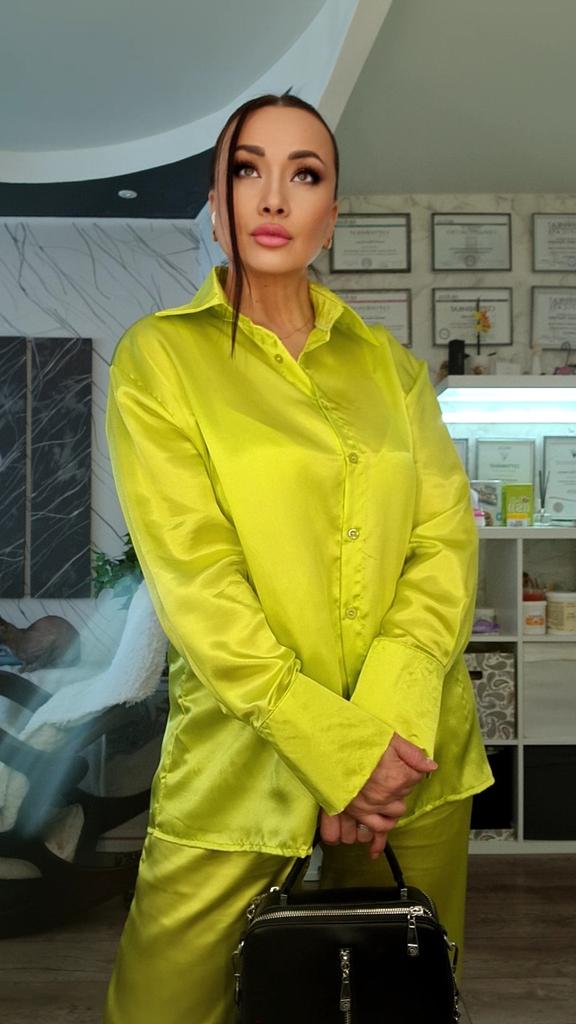 Casual Loose Satin Blouse Women Sets Elegant Long Sleeve Two Pieces Outfits Women Shirt Straight Pants Suit Female Solid Tops