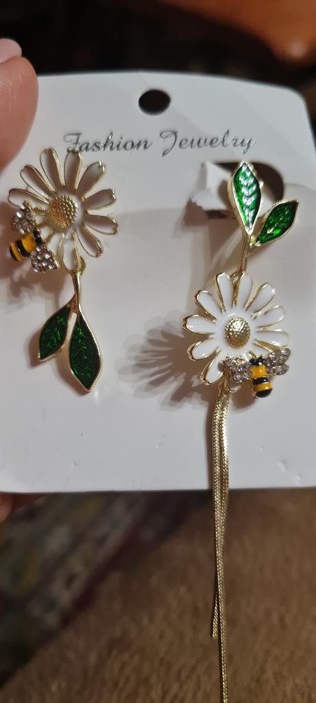 2022 New Asymmetric Daisy Tassel Earrings Female Niche Design Small Bee Earrings Temperament Long Earrings