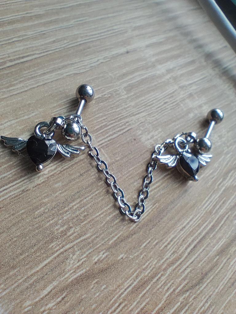 1.2mm Heart Double Lobe Helix Piercing Earring Chain Cartilage Earring Studs Dangle Girl Fashion Body Jewelry