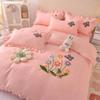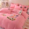 4pcs/set Solid Color Bed Sheet Flower Embroidery Quilt Cover Pillowcases Four Piece Set High-end Skin-friendly Comfortable Naked Sleeping Bedding Set