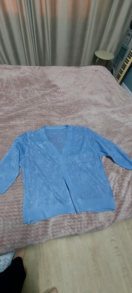For parameters bust-waist-hips 105x90x112 cm, the cardigan fit with a slight overlap. The color, as in the photo, is a dull lilac. Thin.