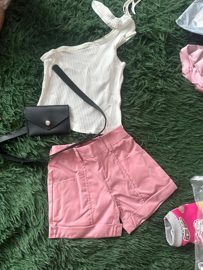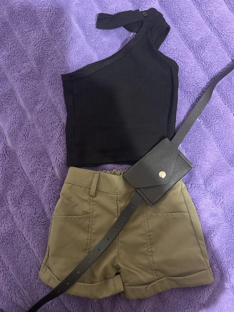 Infant Girl Tanks Tops + Shorts + Waist Bag, Pockets Decoration Casual Style Summer Clothing