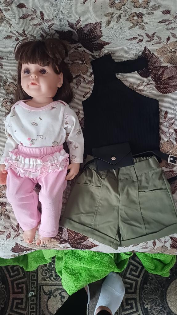 Everything was strange: the shorts were sooooo small, even for a very thin girl. The top was just right, precisely because the girl was thin.. The quality of the fabric is good.