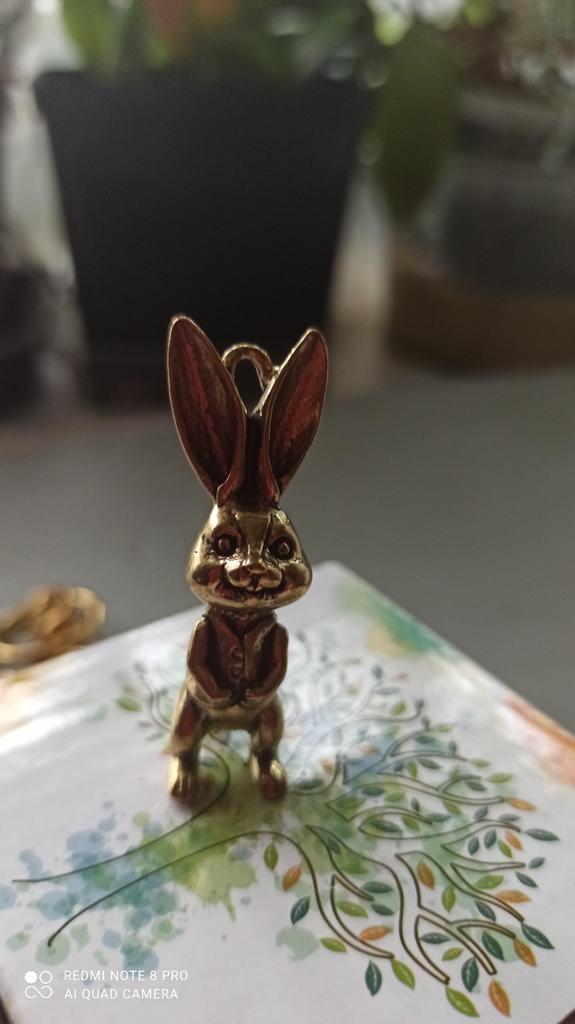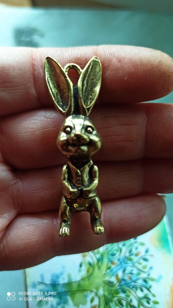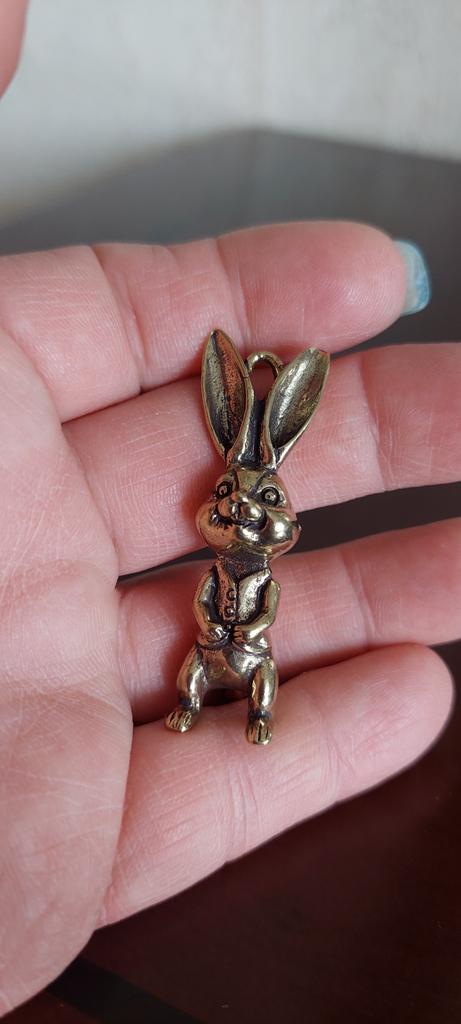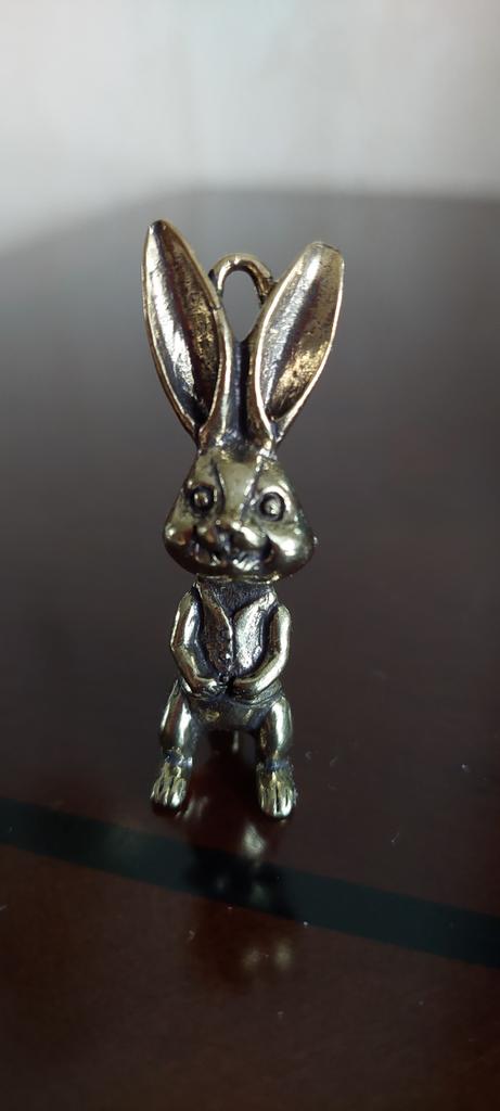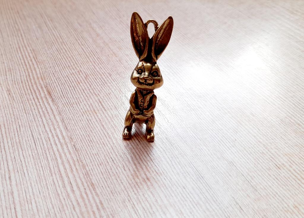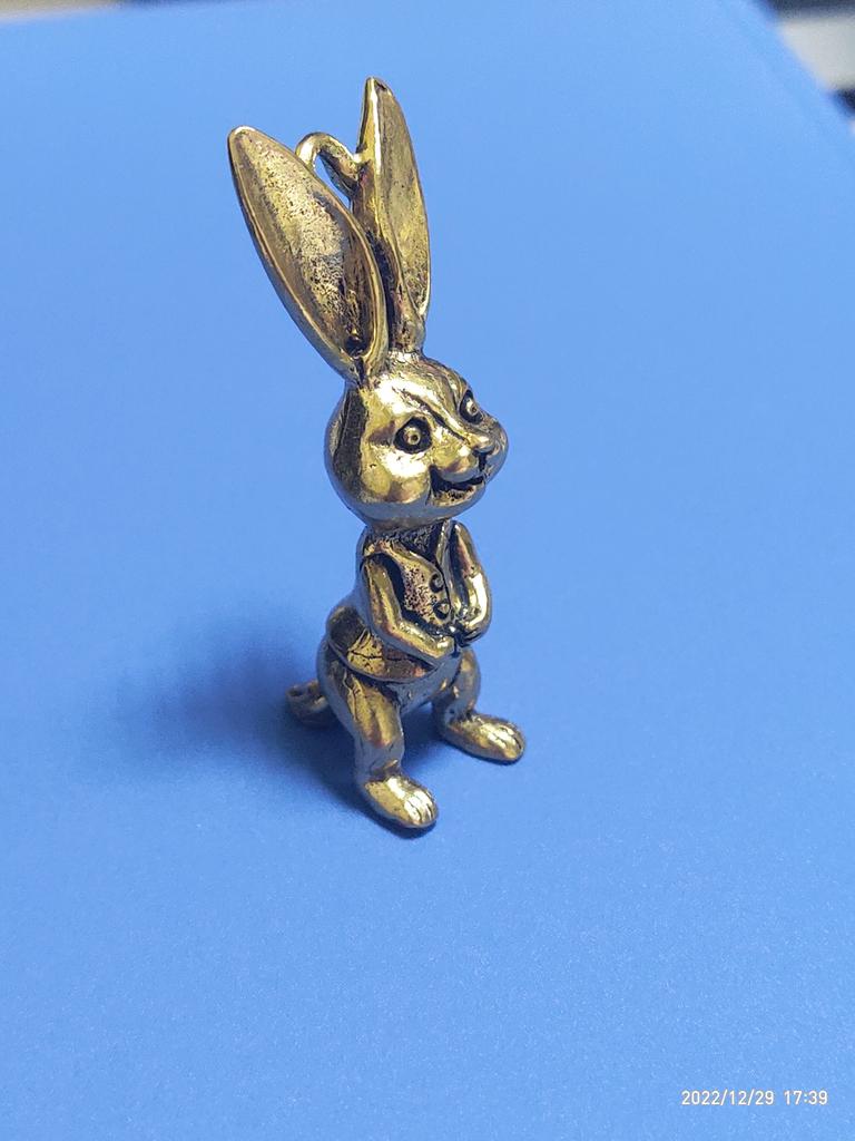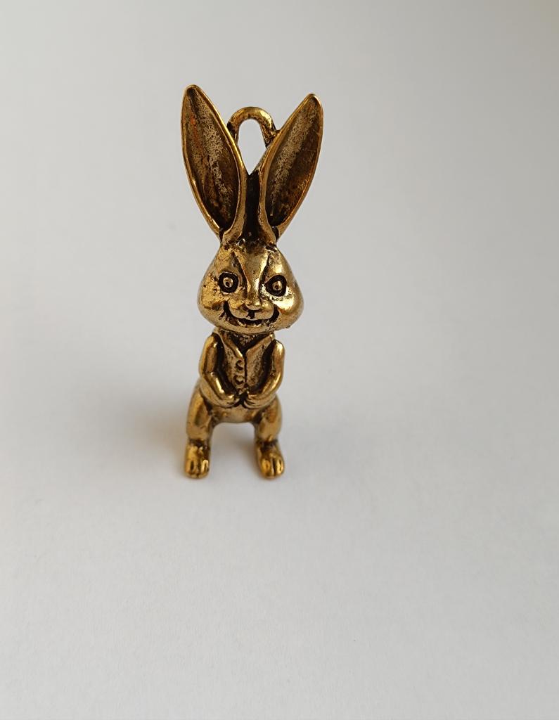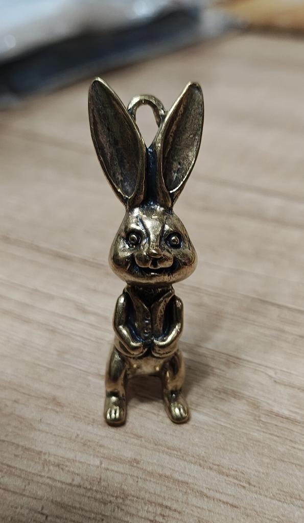 Brass Keyring Pendant Animal Rabbit Figure Keychain Lucky Rabbit Statue Ornament