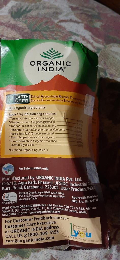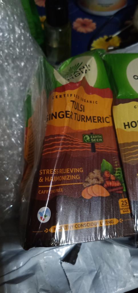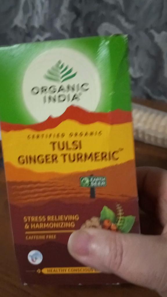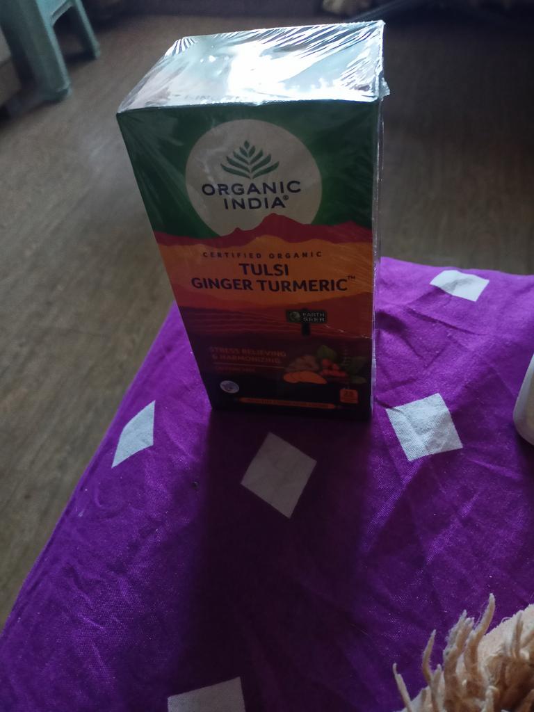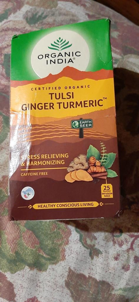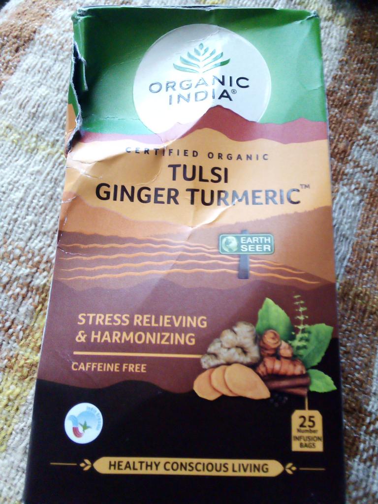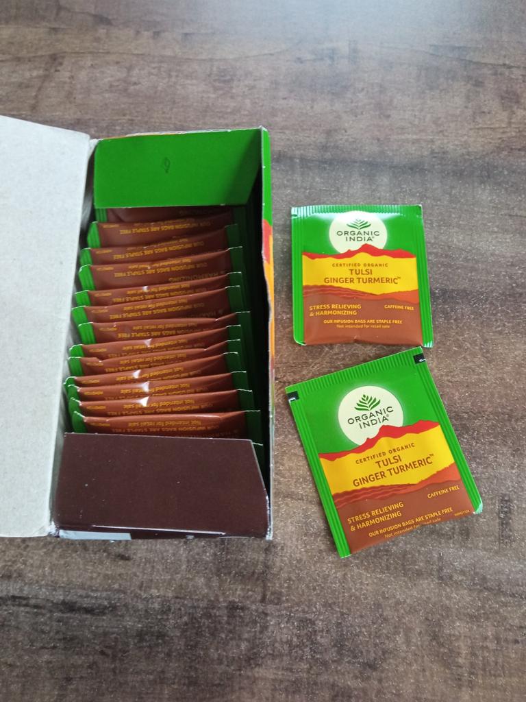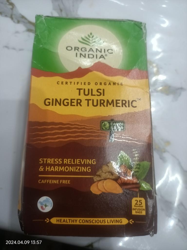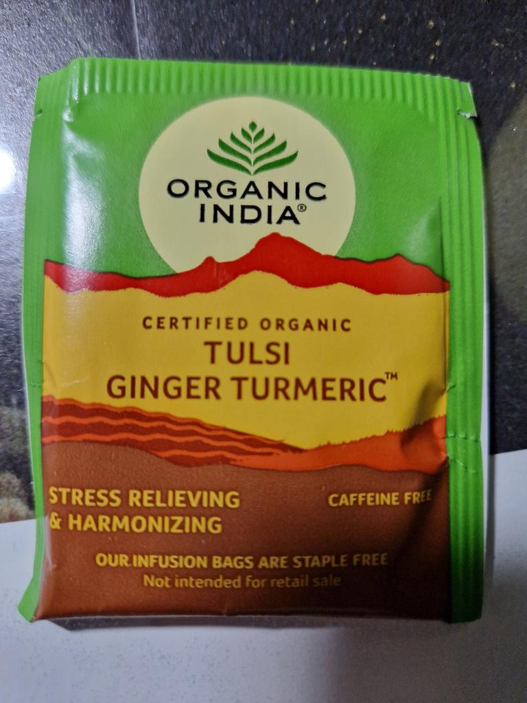 Tea with Tulsi, Ginger and Turmeric (25 Pack, 1.9 G), Tulsi Ginger Turmeric Tea Organic India