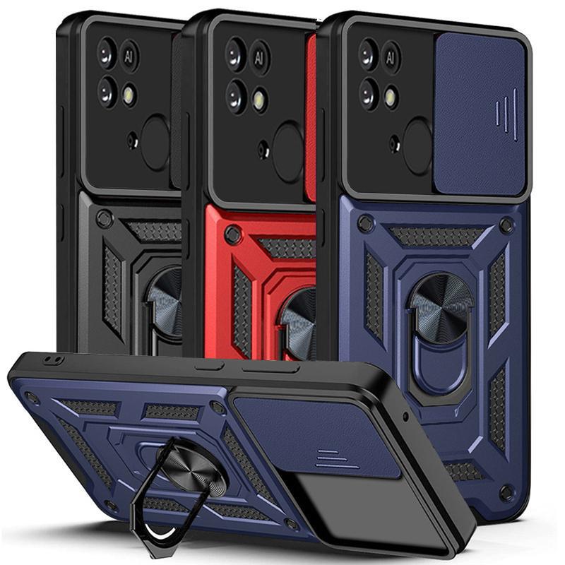 Slide Camera Lens Phone Case For Xiaomi Redmi Note 11 10 9 Pro 11S 10S 10C 9T 9AT 9C Poco X3 NFC M3 M4 Pro Military Grade Shockproof Armor Ring Cover